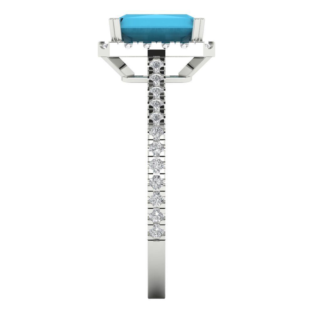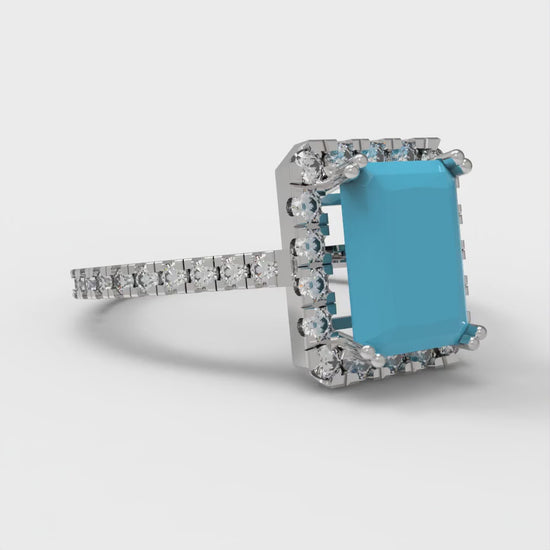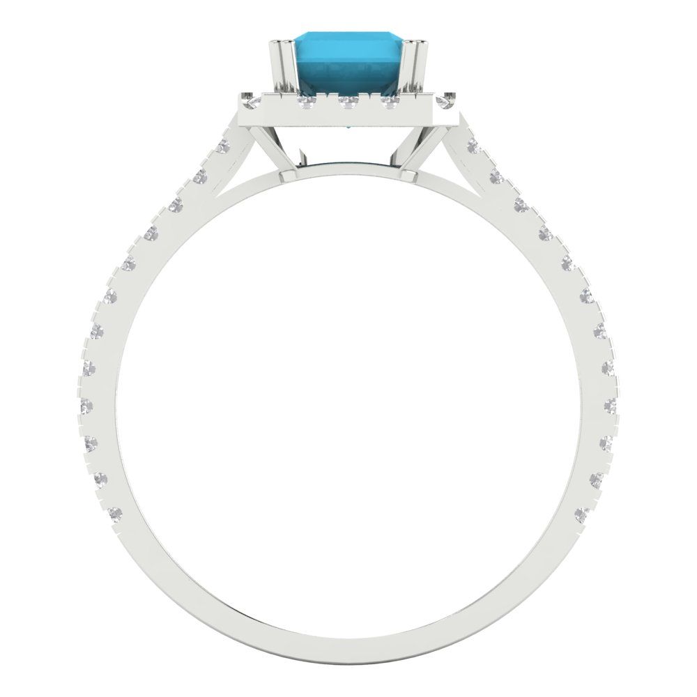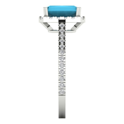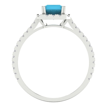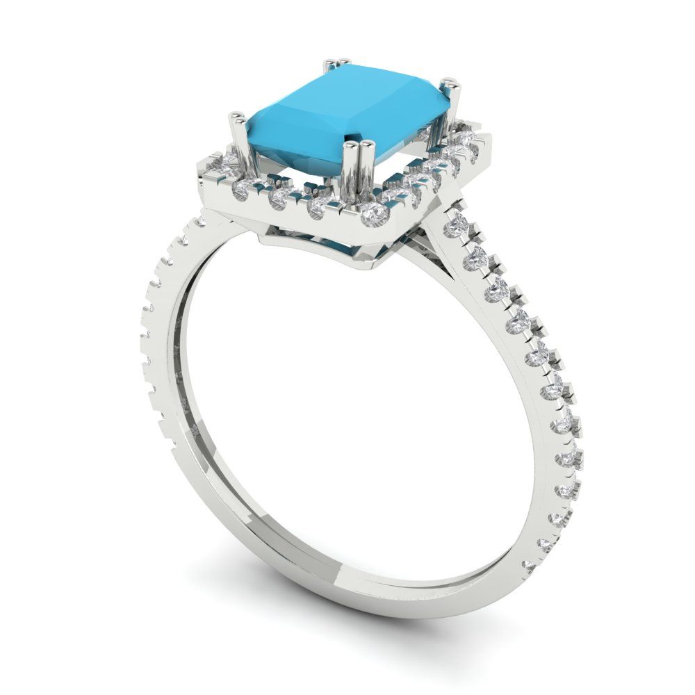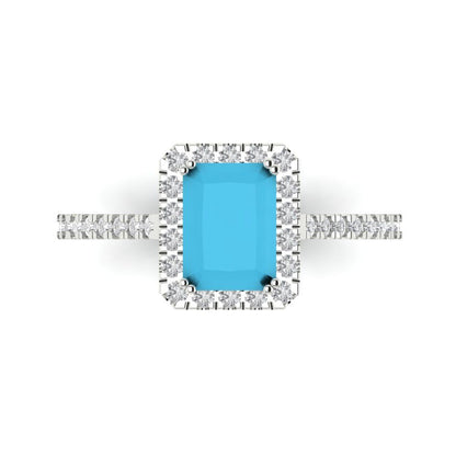 1.86 cttw Simulated Turquoise Hidden Halo Engagement Ring - Solid Gold (Emerald Cut,7.5x5.5mm)
