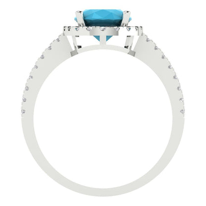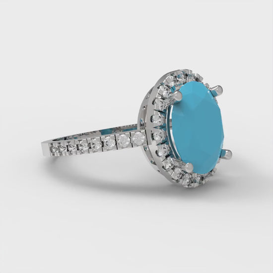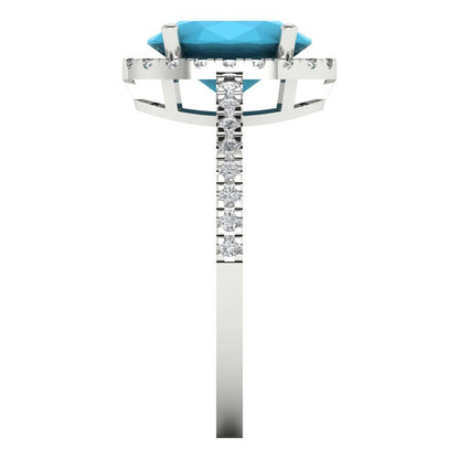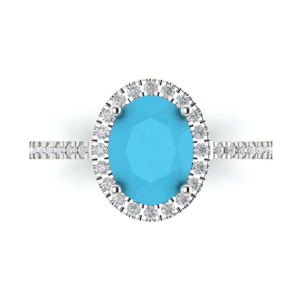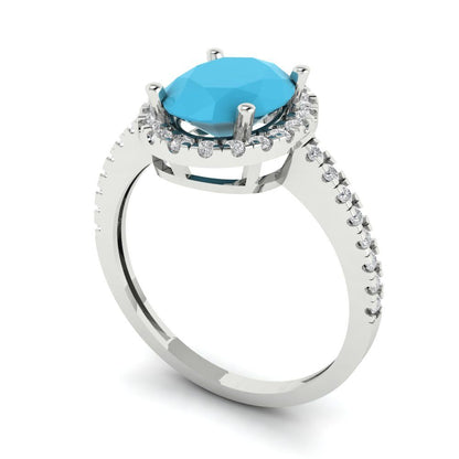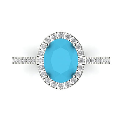 2.27 cttw Simulated Turquoise Hidden Halo Engagement Ring - Solid Gold (Oval Cut,9X7mm)