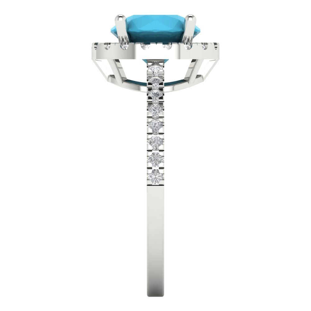 1.8 cttw Simulated Turquoise Hidden Halo Engagement Ring - Solid Gold (Round Cut,7.5mm)