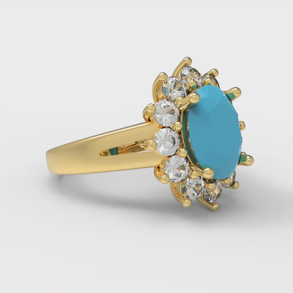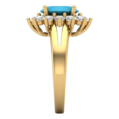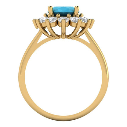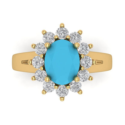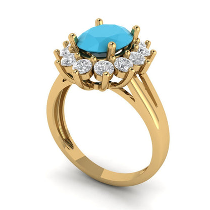 2.72 cttw Simulated Turquoise Hidden Halo Engagement Ring - Solid Gold (Oval Cut,9x7mm)