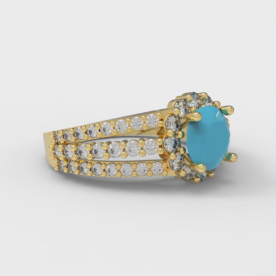 1.83 cttw Simulated Turquoise Hidden Halo Engagement Ring - Solid Gold (Round Cut,6.5mm)