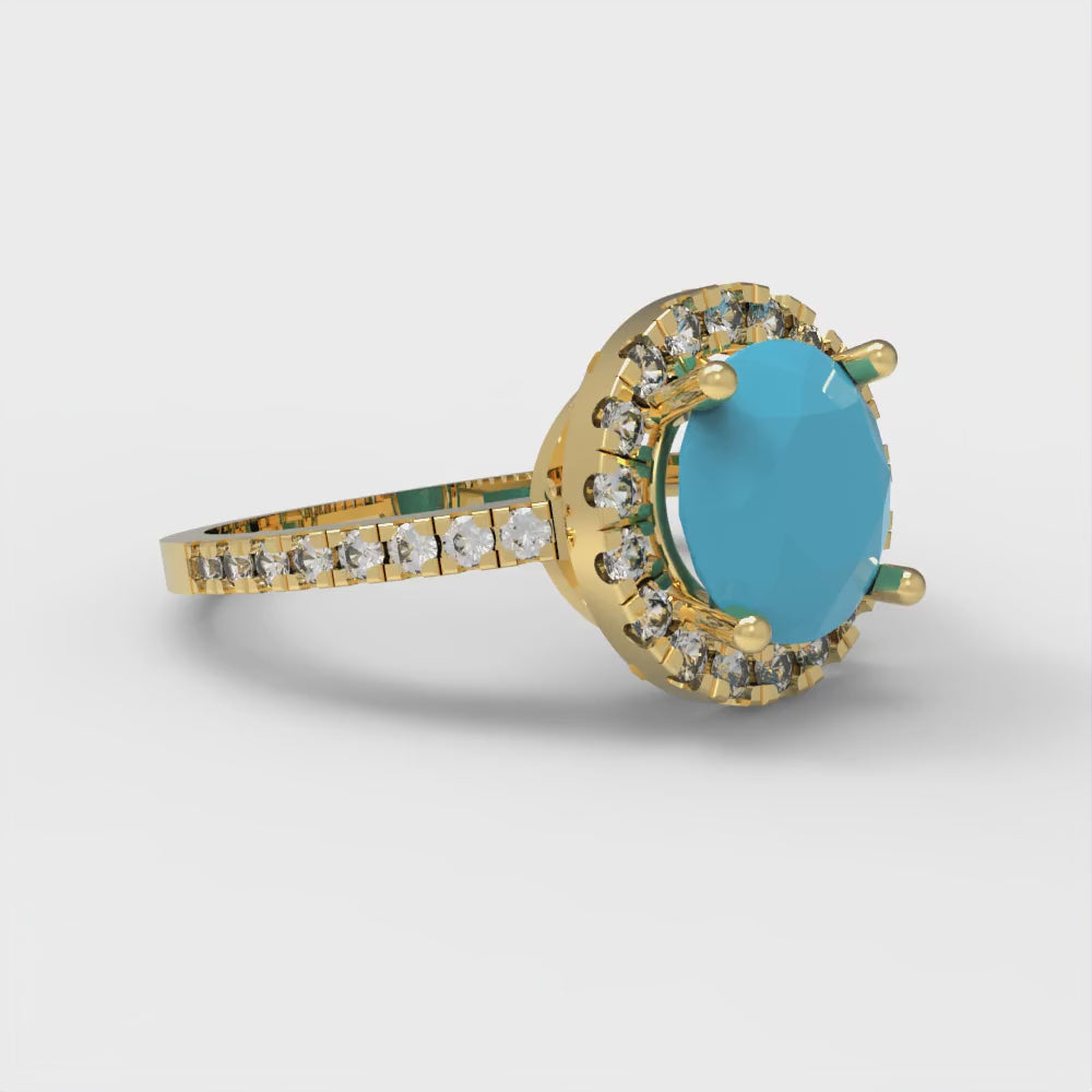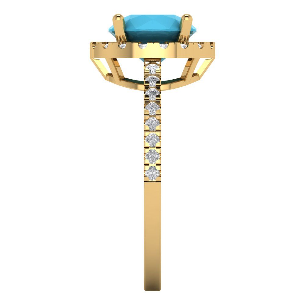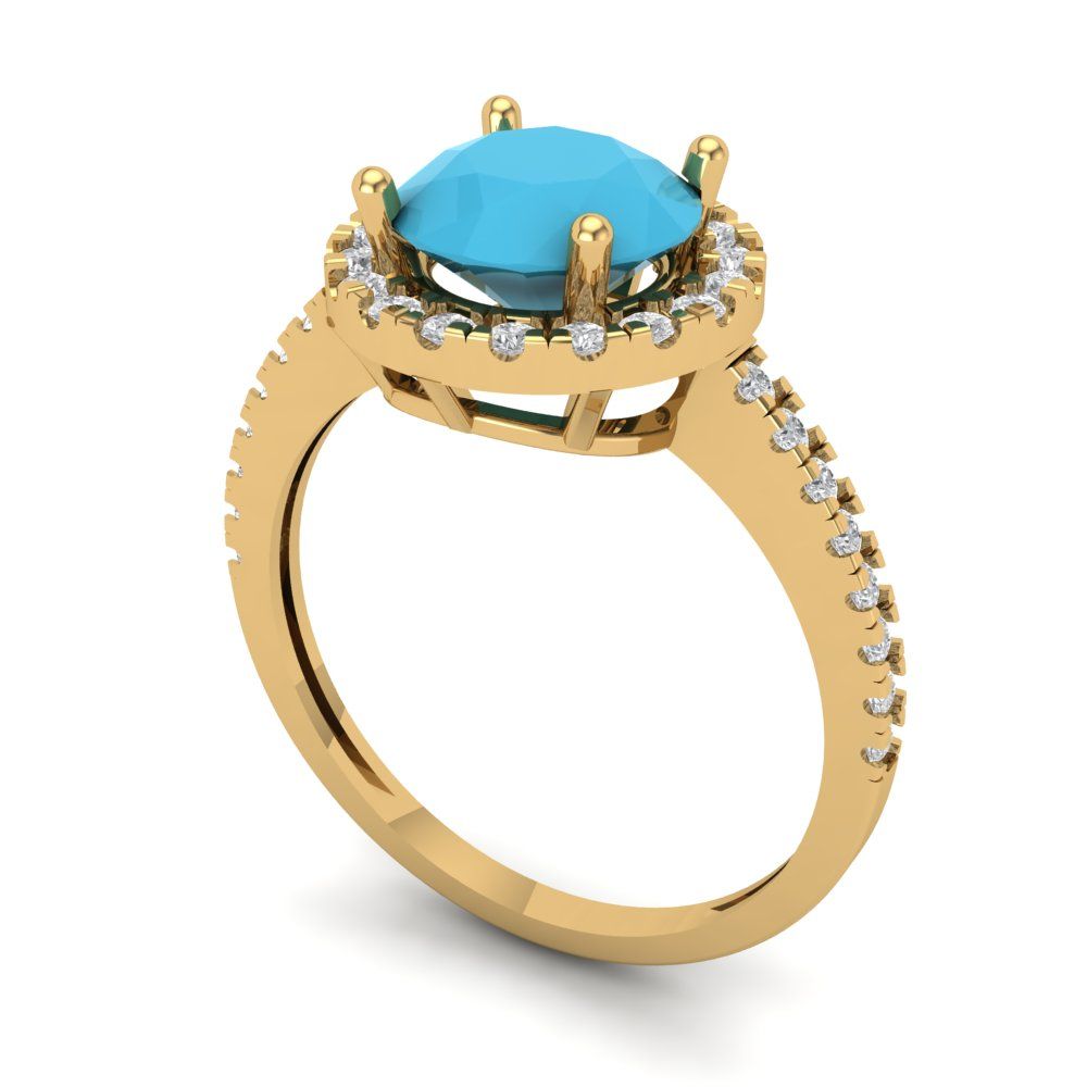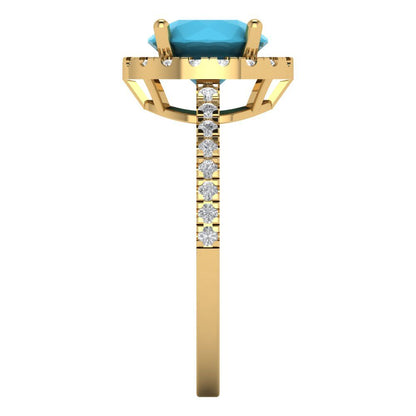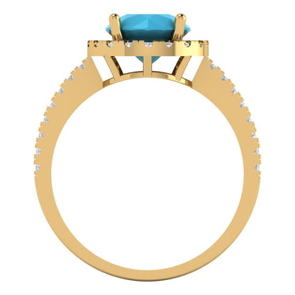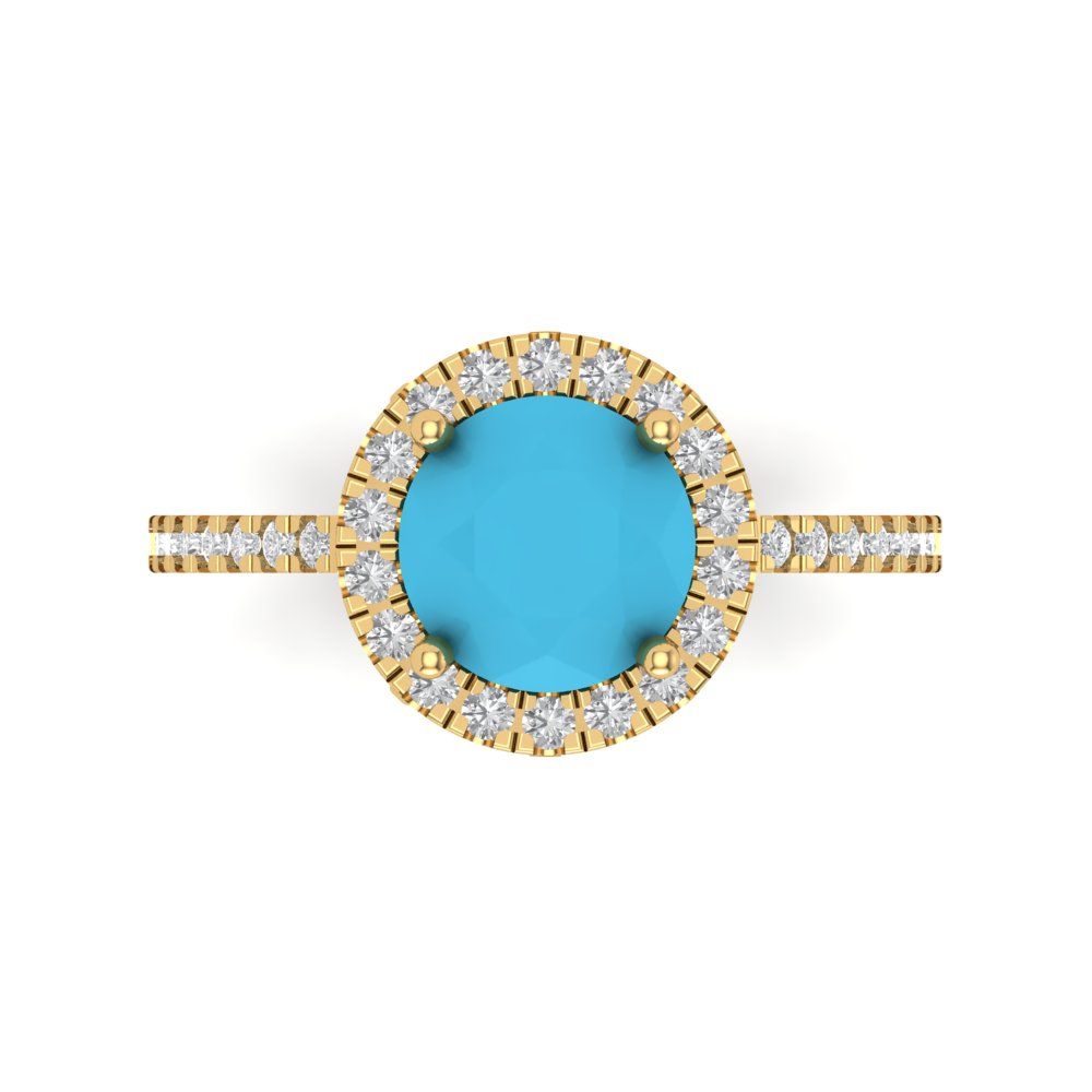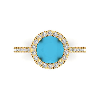 1.8 cttw Simulated Turquoise Hidden Halo Engagement Ring - Solid Gold (Round Cut,7.5mm)