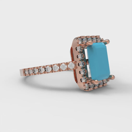 1.86 cttw Simulated Turquoise Hidden Halo Engagement Ring - Solid Gold (Emerald Cut,7.5x5.5mm)