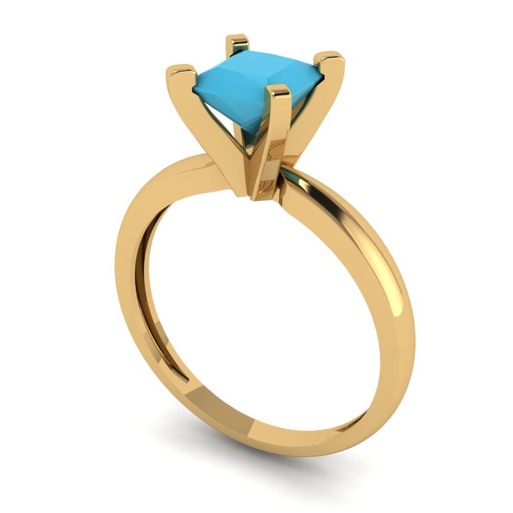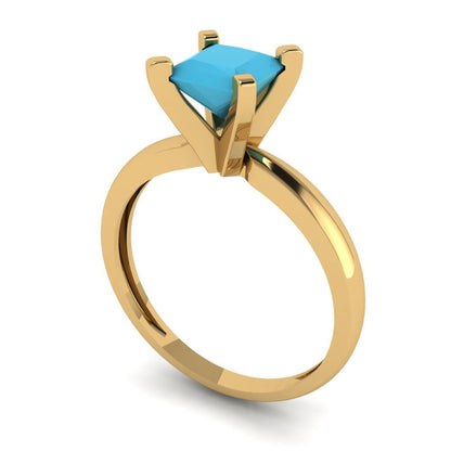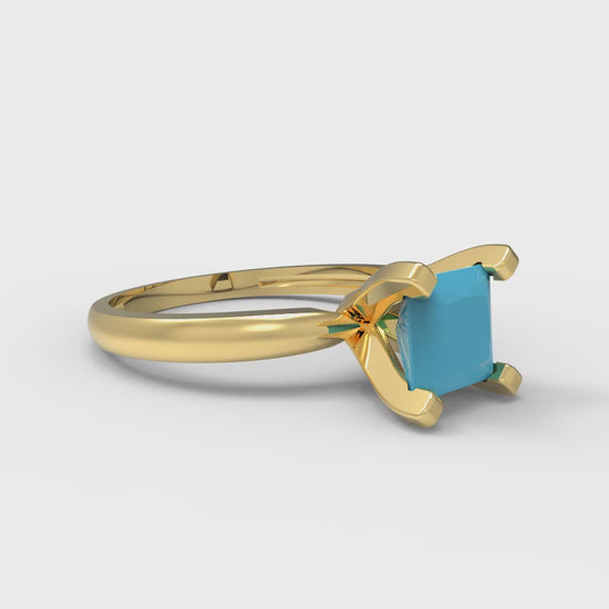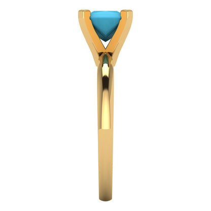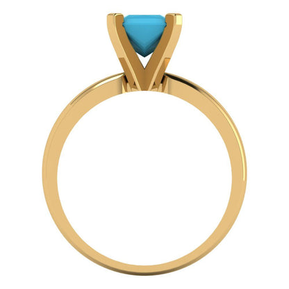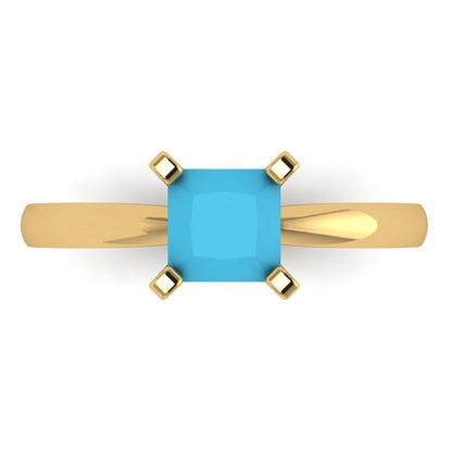 1 cttw Simulated Turquoise Solitaire Engagement Ring - Solid Gold (Princess Cut,5.5mm)