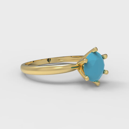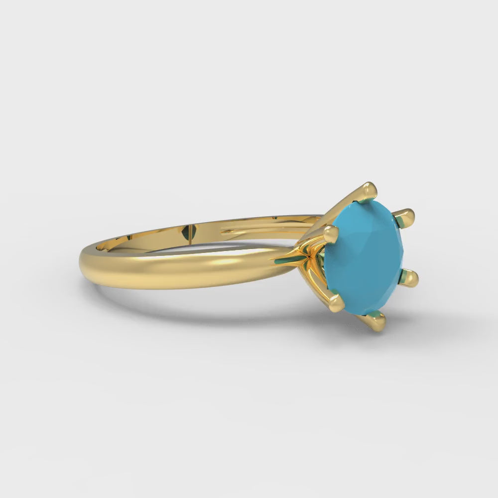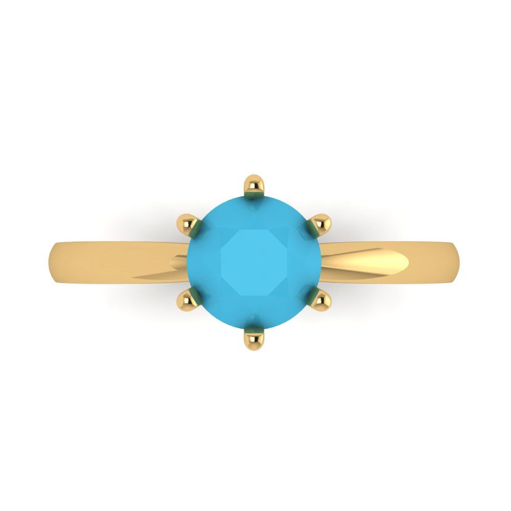 1 cttw Simulated Turquoise Solitaire Engagement Ring - Solid Gold (Round Cut,6.5mm)