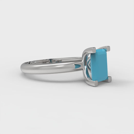 1 cttw Simulated Turquoise Solitaire Engagement Ring - Solid Gold (Emerald Cut,7X5mm)
