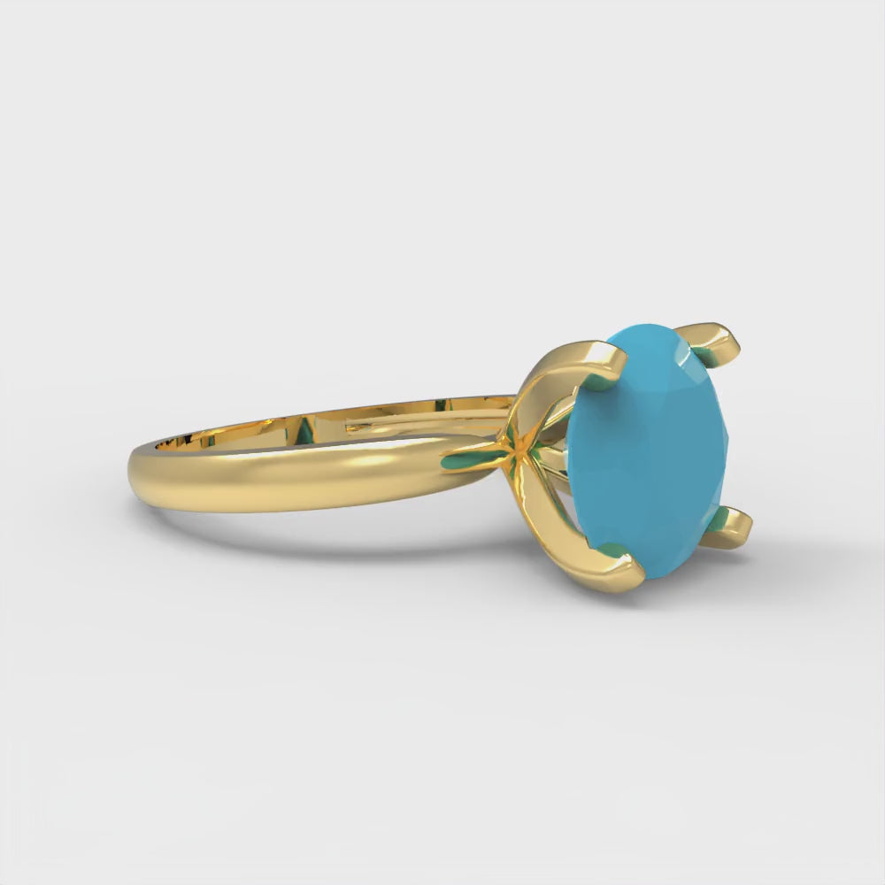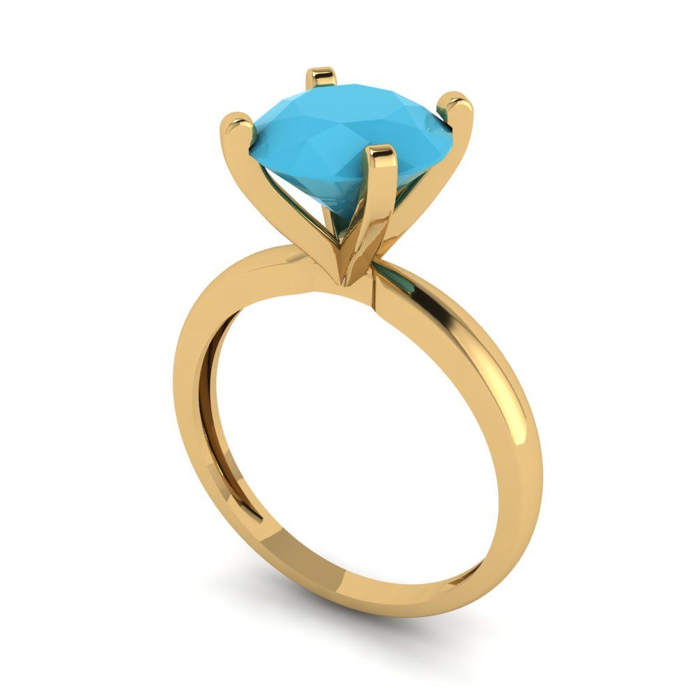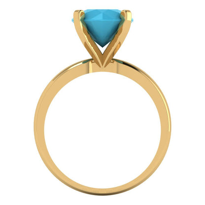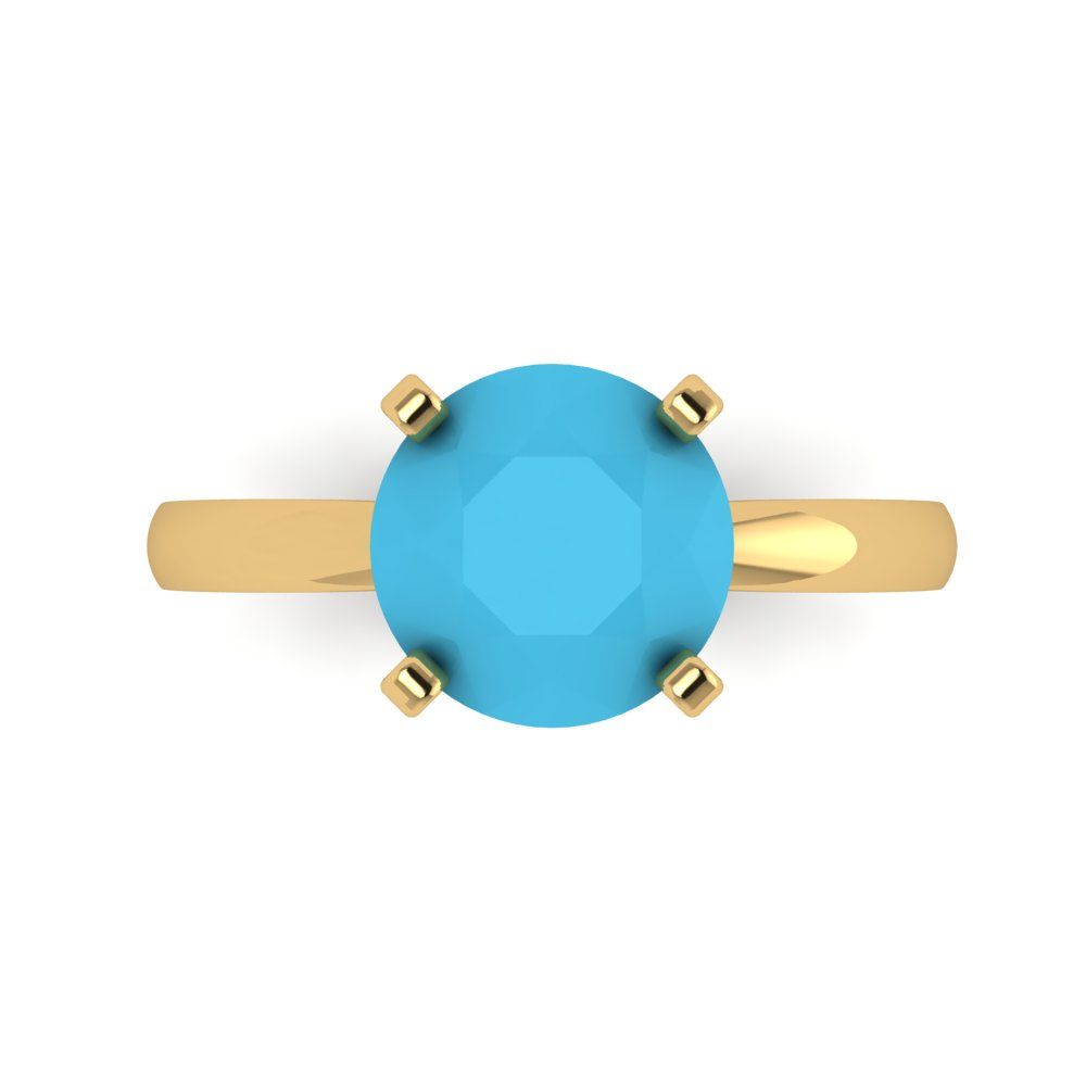 3 cttw Simulated Turquoise Solitaire Engagement Ring - Solid Gold (Round Cut,9mm)
