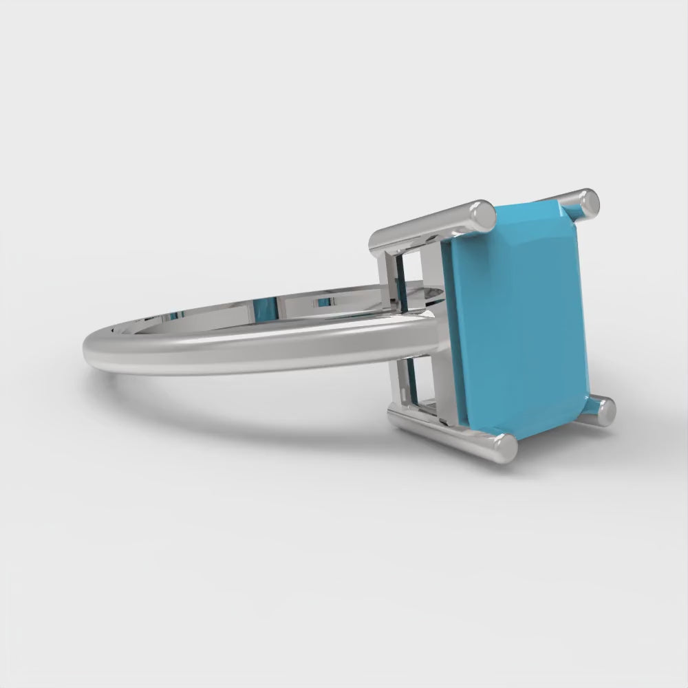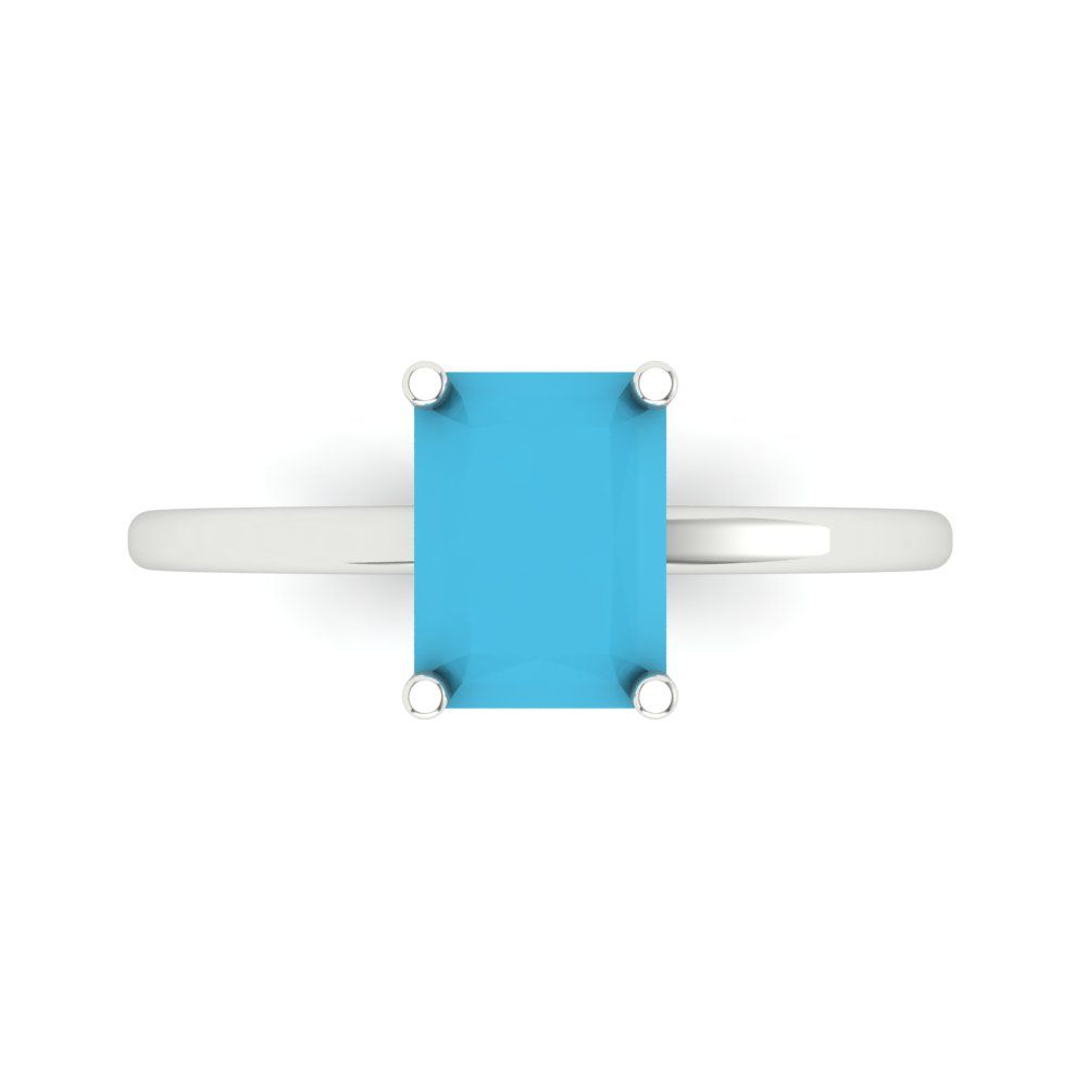 2 cttw Simulated Turquoise Solitaire Engagement Ring - Solid Gold (Emerald Cut,8x6mm)