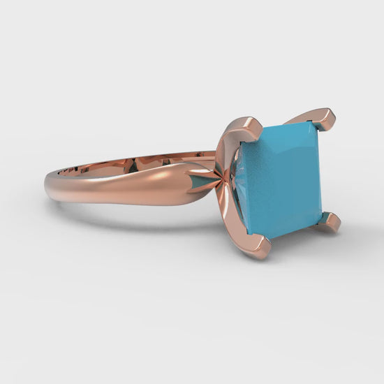 2.5 cttw Simulated Turquoise Solitaire Engagement Ring - Solid Gold (Princess Cut,7.5mm)