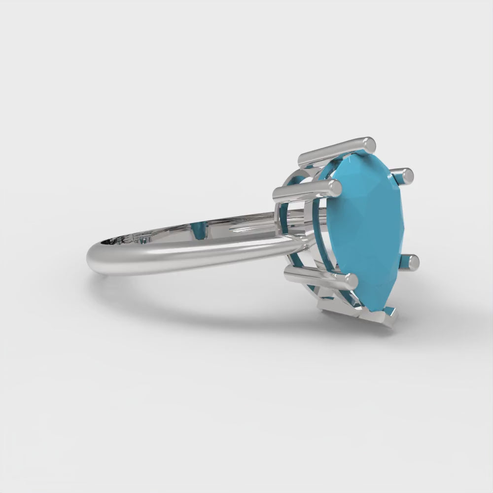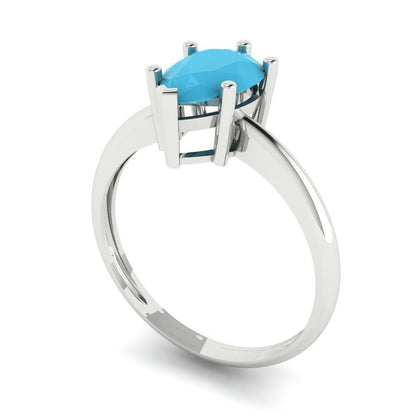 1.5 cttw Simulated Turquoise Solitaire Engagement Ring - Solid Gold (Pear Cut,9x6mm)