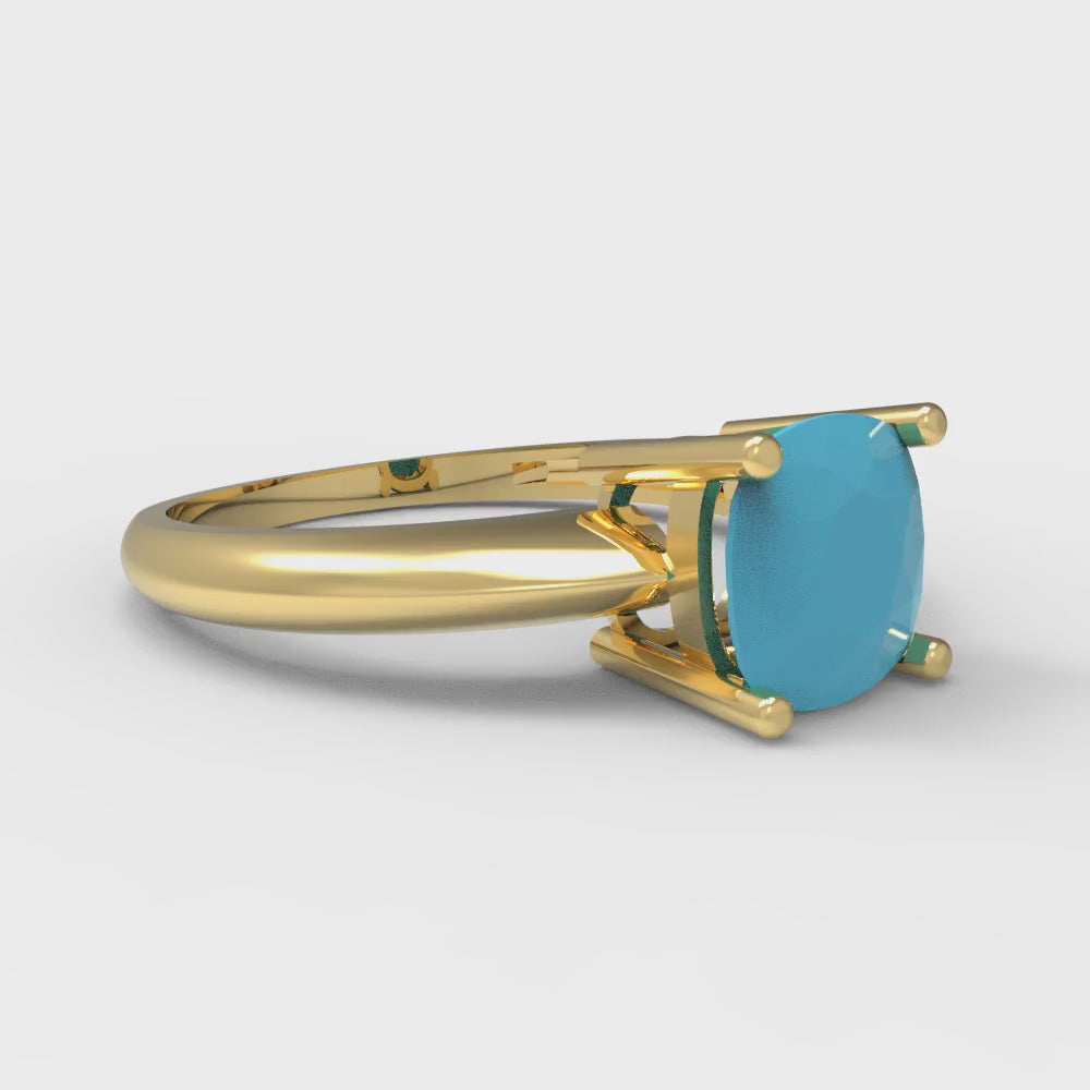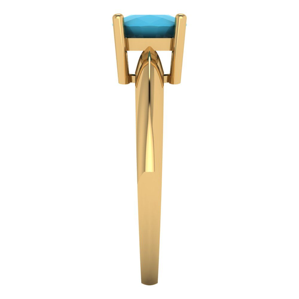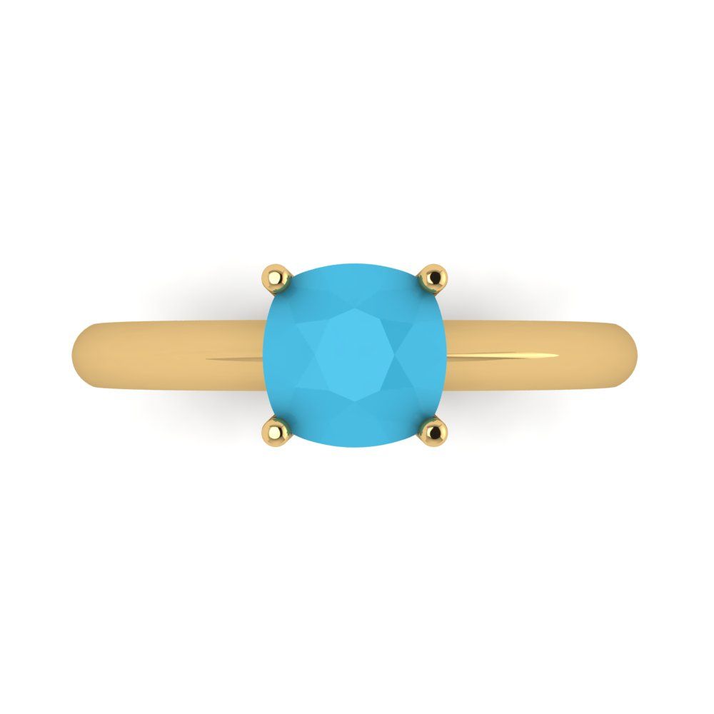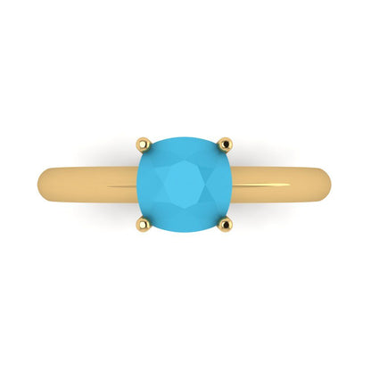 1.5 cttw Simulated Turquoise Solitaire Engagement Ring - Solid Gold (Cushion Cut,6.5mm)