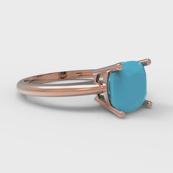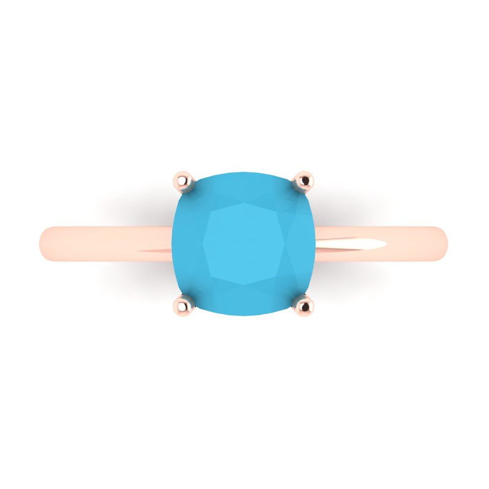 2 cttw Simulated Turquoise Solitaire Engagement Ring - Solid Gold (Cushion Cut,7mm)