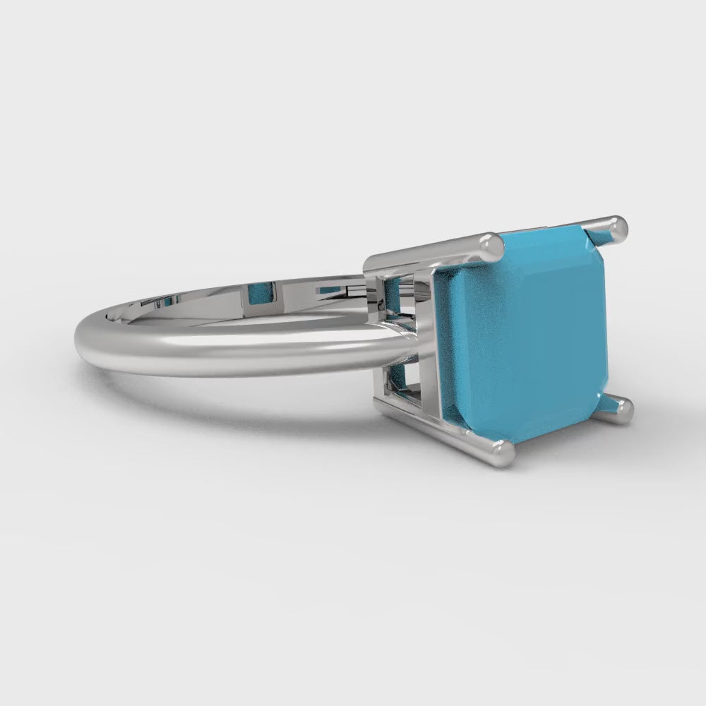 2 cttw Simulated Turquoise Solitaire Engagement Ring - Solid Gold (Asscher Cut,7.0mm)