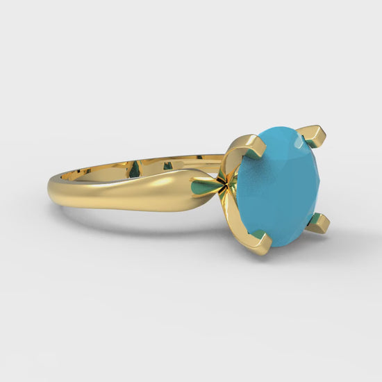 2.5 cttw Simulated Turquoise Solitaire Engagement Ring - Solid Yellow Gold (VVS1, Round Cut,8.5mm)