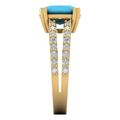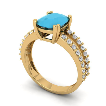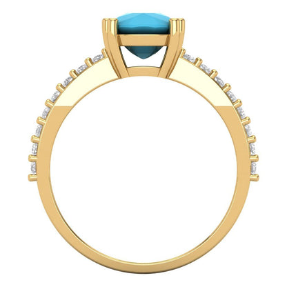 3.48 cttw Simulated Turquoise Solitaire with Zirconia Simulated Diamond Accents Engagement Ring - Solid Gold (Long Cushion Cut,9x7mm)