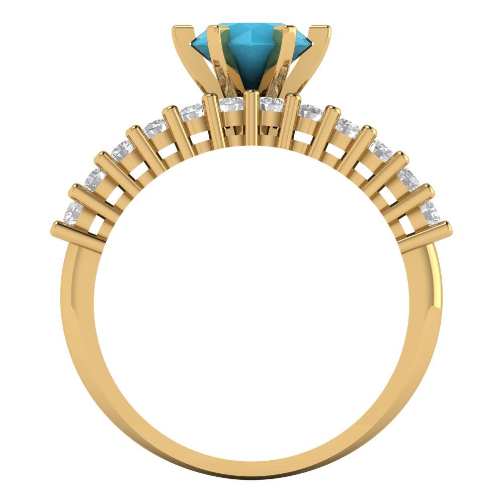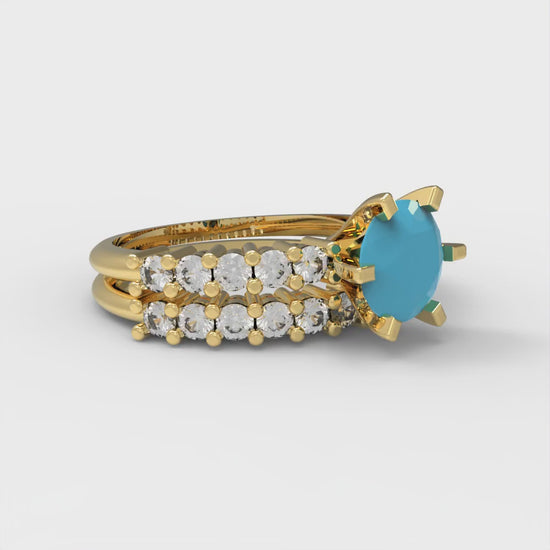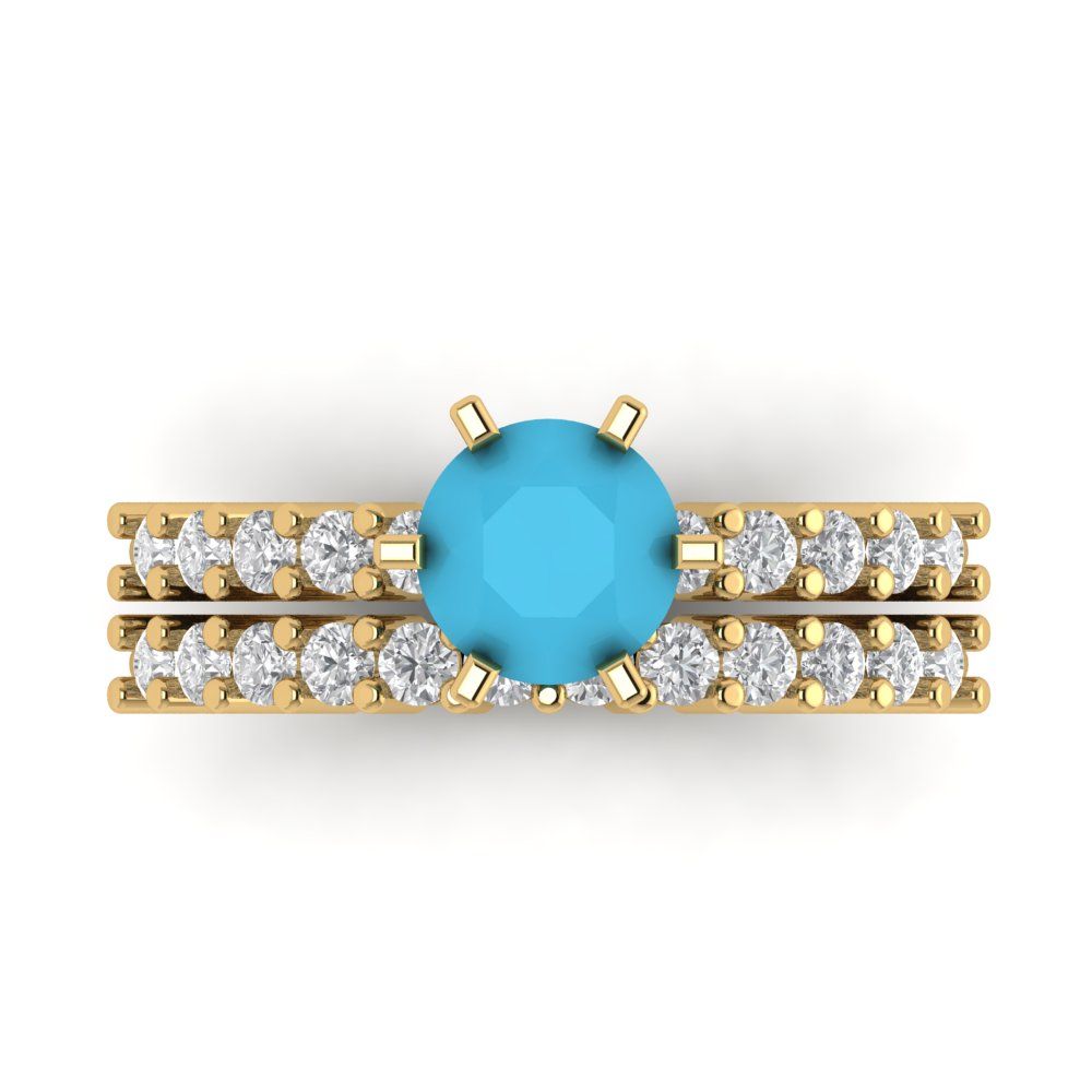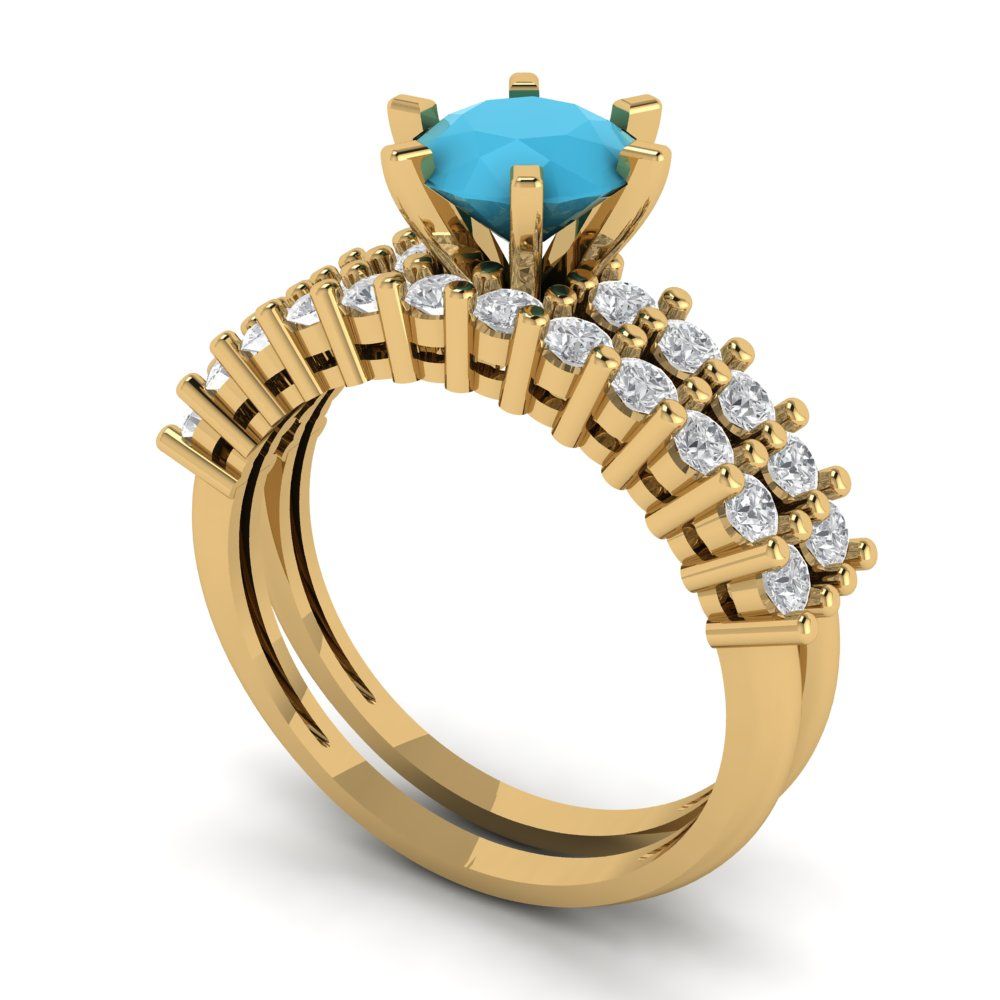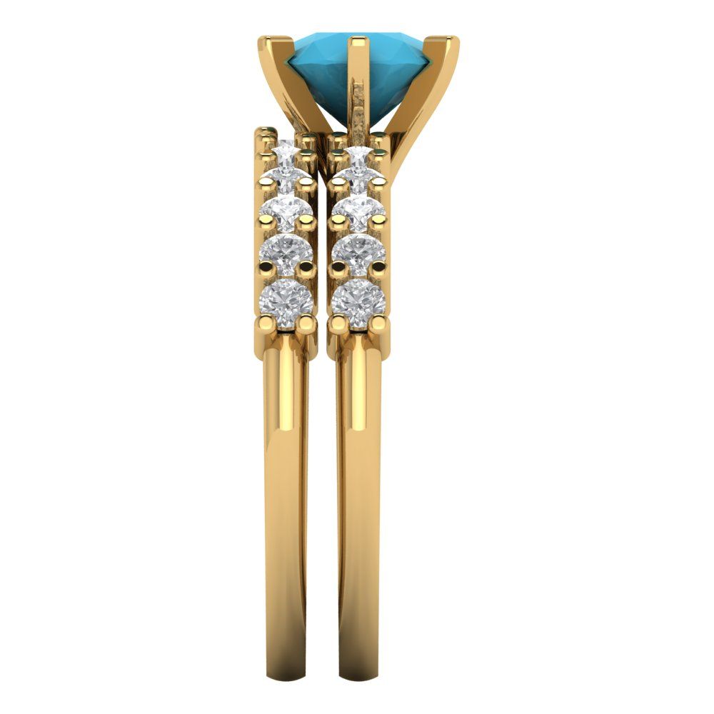 1.66 cttw Round Cut Simulated Turquoise Bridal Set - Solid Yellow Gold Engagement Ring & Wedding Band