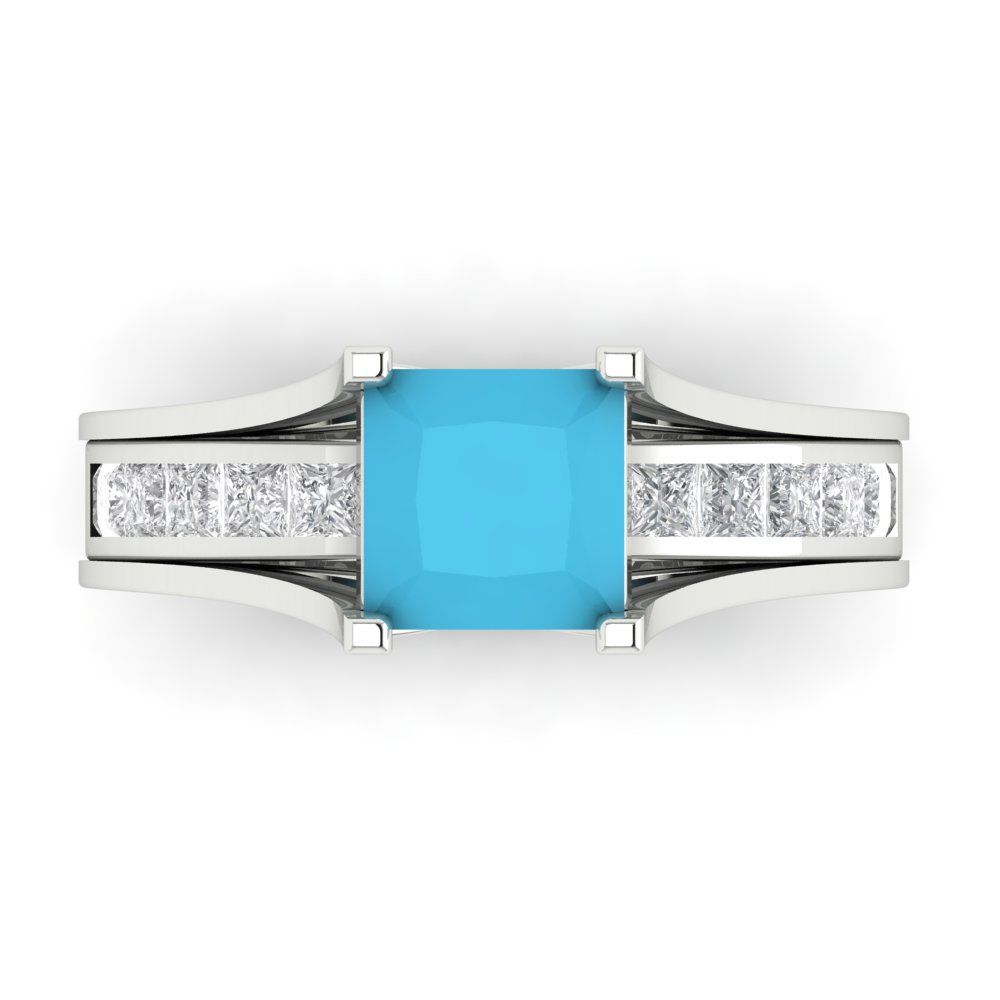 2.28 cttw Princess Cut Simulated Turquoise Bridal Set - Solid White Gold Engagement Ring & Wedding Band