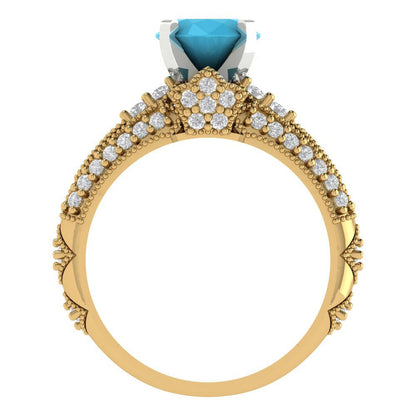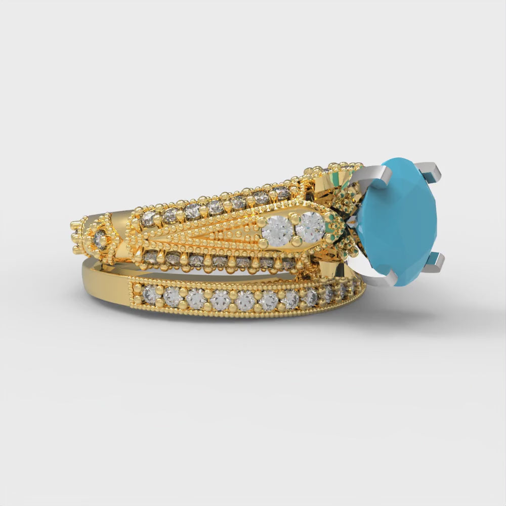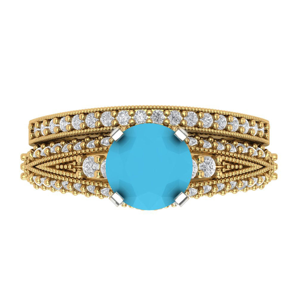 2.095 cttw Round Cut Simulated Turquoise Bridal Set - Solid Yellow/White Gold Engagement Ring & Wedding Band