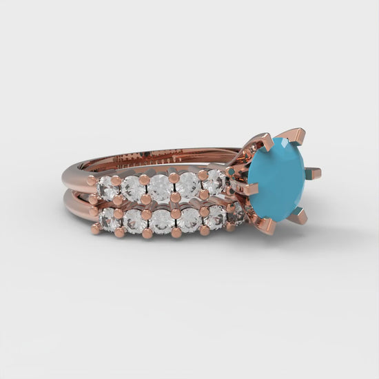 1.66 cttw Round Cut Simulated Turquoise Bridal Set - Solid Rose Gold Engagement Ring & Wedding Band