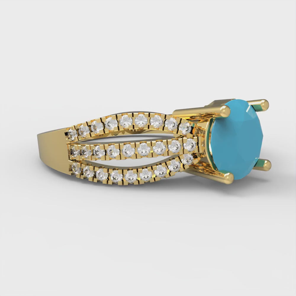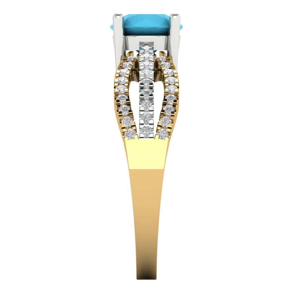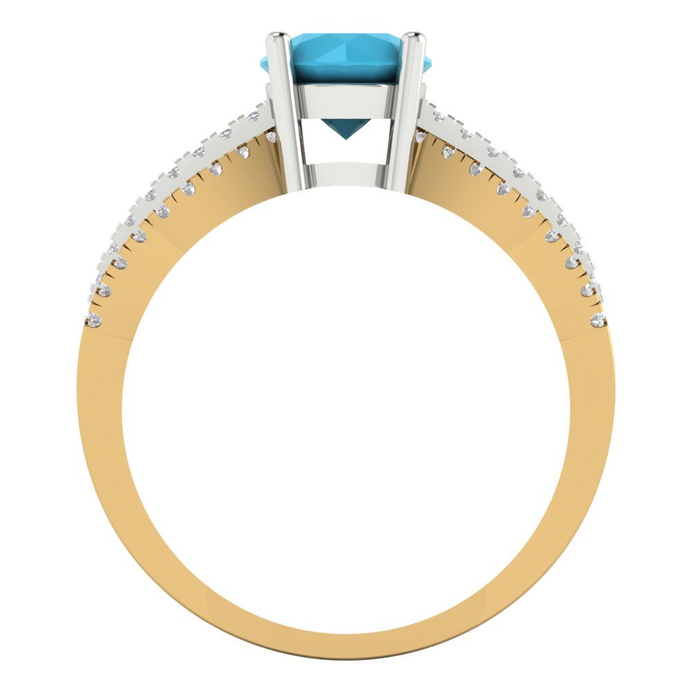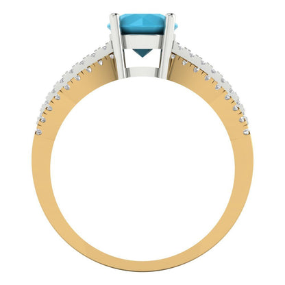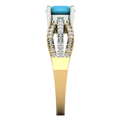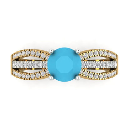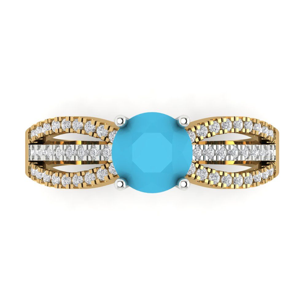 1.27 cttw Simulated Turquoise Solitaire with Zirconia Simulated Diamond Accents Engagement Ring - Solid Gold (Round Cut,6.5mm)
