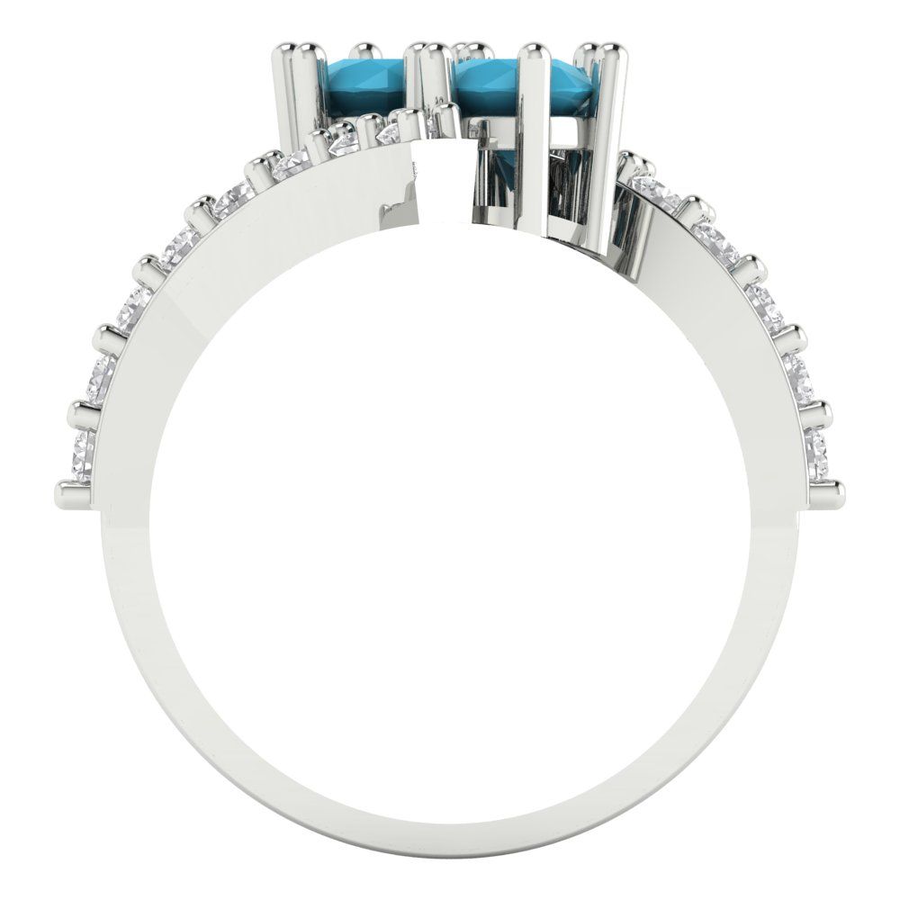 1.48 cttw Simulated Turquoise Solitaire with Zirconia Simulated Diamond Accents Engagement Ring - Solid Gold (Round Cut,5mm)