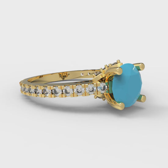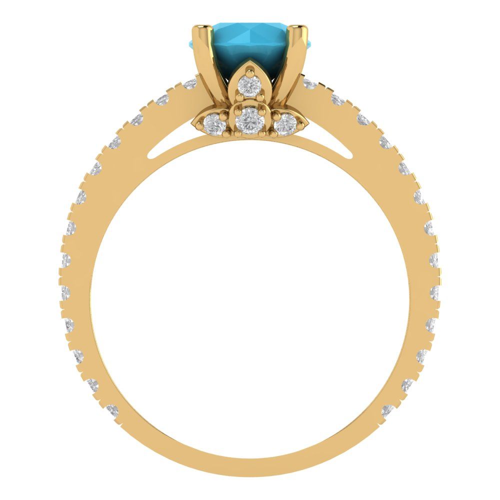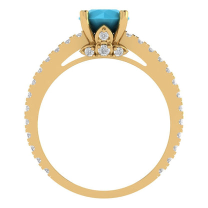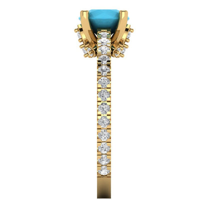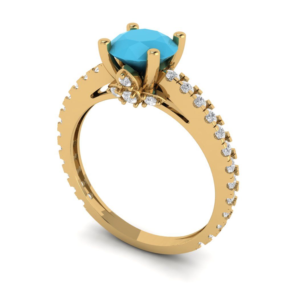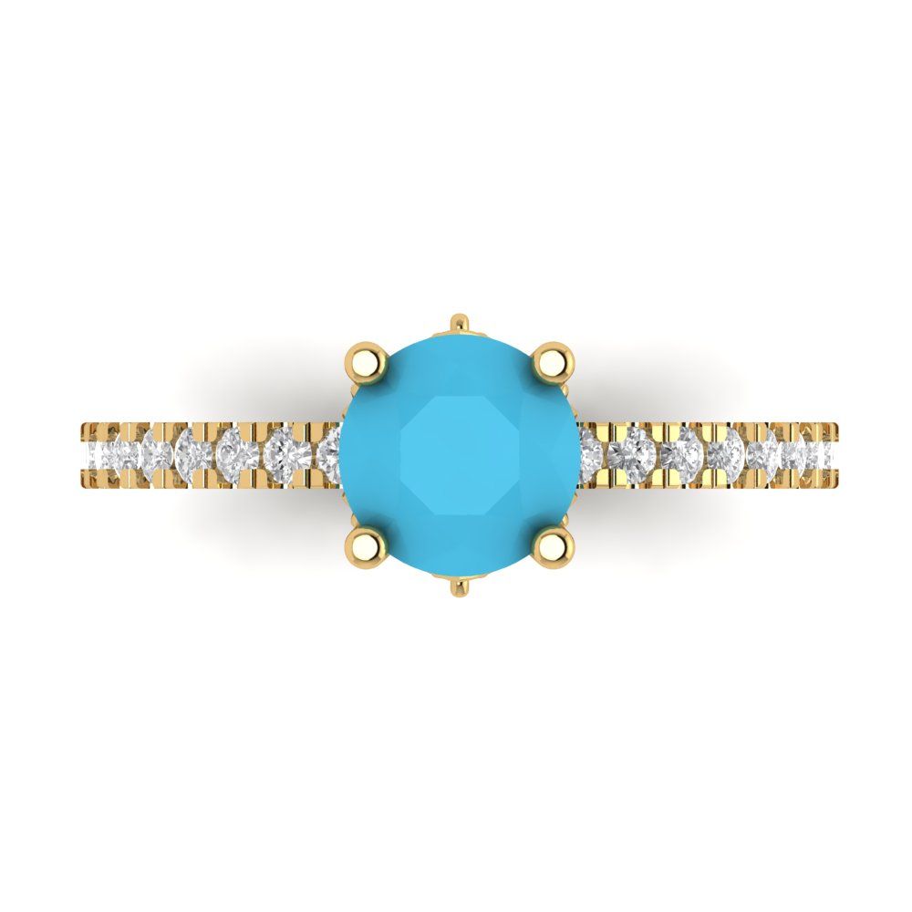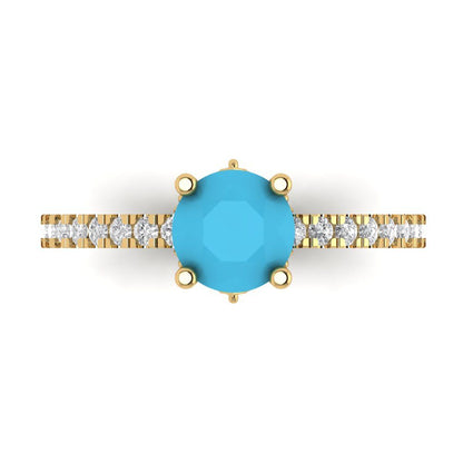 1.465 cttw Simulated Turquoise Solitaire with Zirconia Simulated Diamond Accents Engagement Ring - Solid Gold (Round Cut,6.5mm)