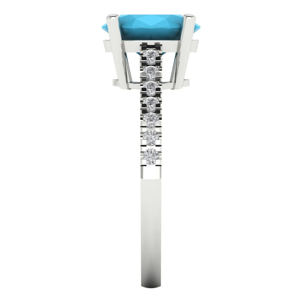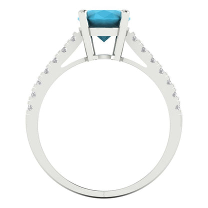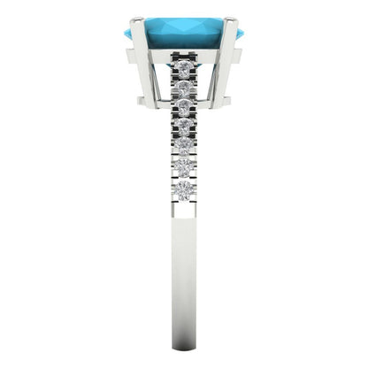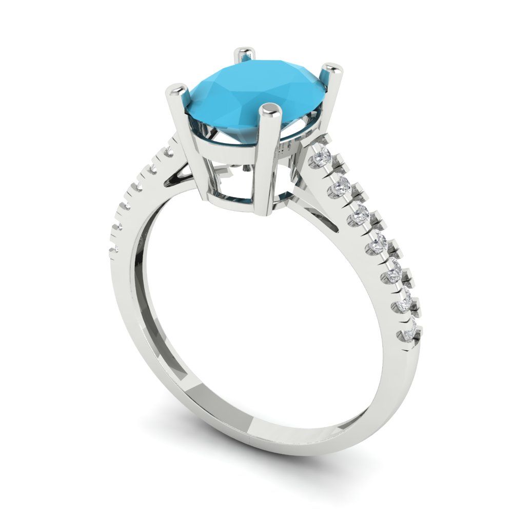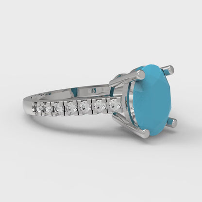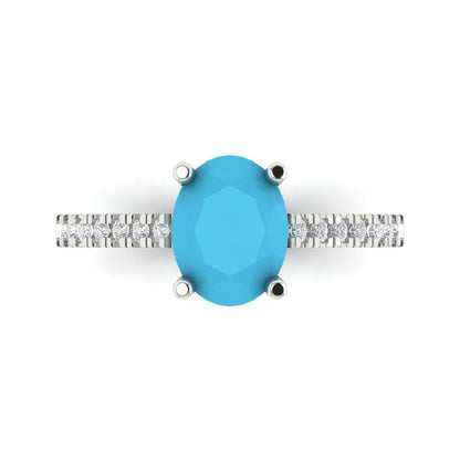 2.21 cttw Simulated Turquoise Solitaire with Zirconia Simulated Diamond Accents Engagement Ring - Solid Gold (Oval Cut,9X7mm)