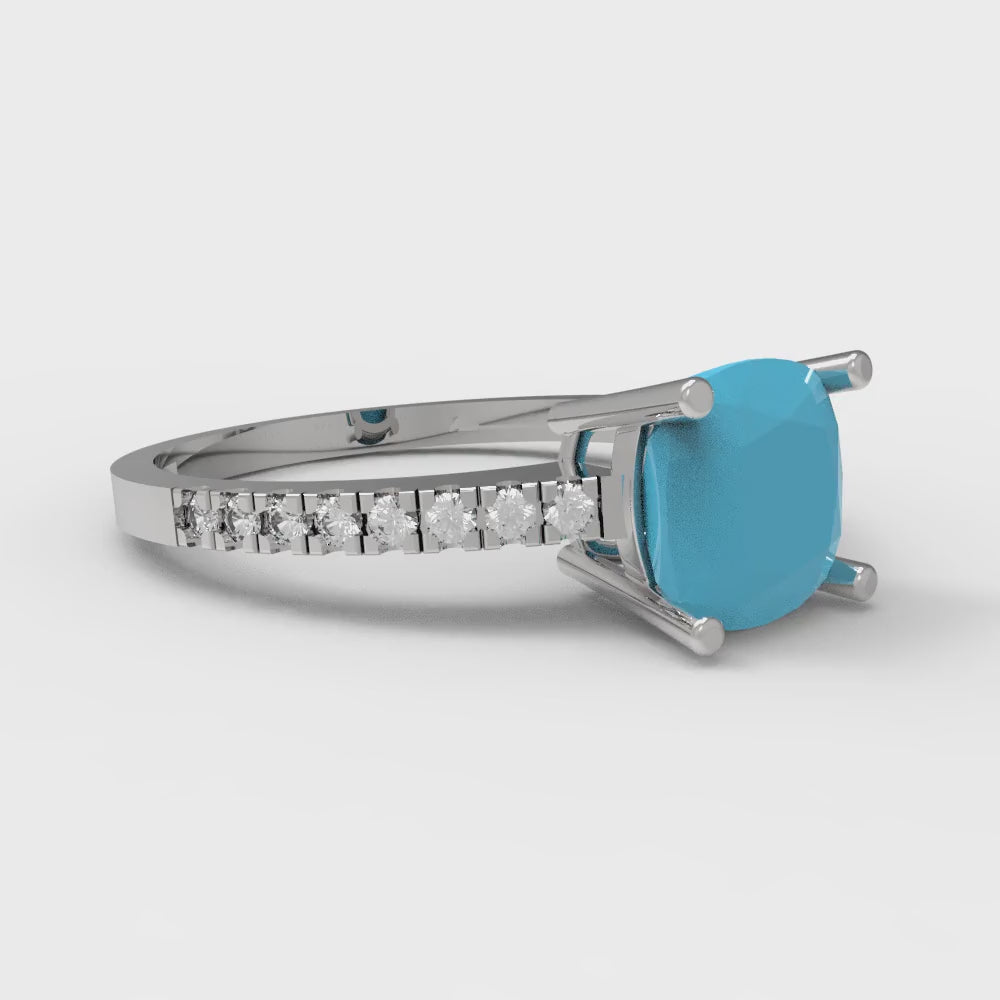 2.7 cttw Simulated Turquoise Solitaire with Zirconia Simulated Diamond Accents Engagement Ring - Solid Gold (Cushion Cut,6.5mm)