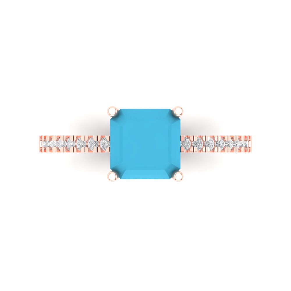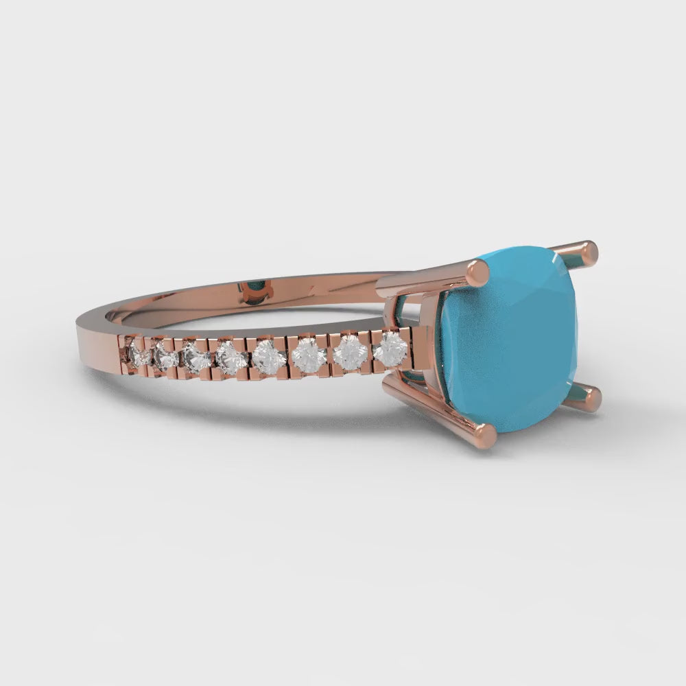 2.7 cttw Simulated Turquoise Solitaire with Zirconia Simulated Diamond Accents Engagement Ring - Solid Gold (Cushion Cut,6.5mm)