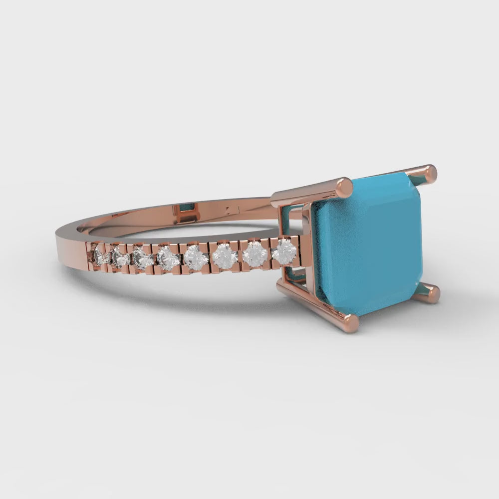 2.7 cttw Simulated Turquoise Solitaire with Zirconia Simulated Diamond Accents Engagement Ring - Solid Gold (Asscher Cut,6.5mm)
