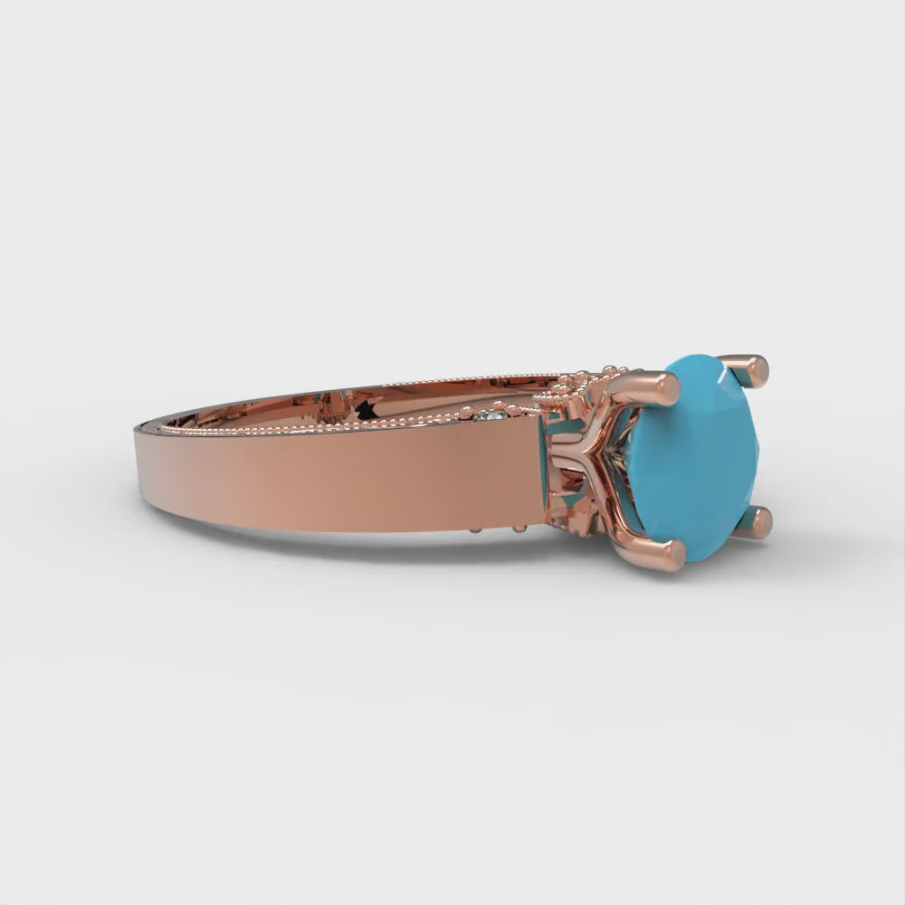 1.06 cttw Simulated Turquoise Solitaire with Zirconia Simulated Diamond Accents Engagement Ring - Solid Gold (Round Cut,6.5mm)