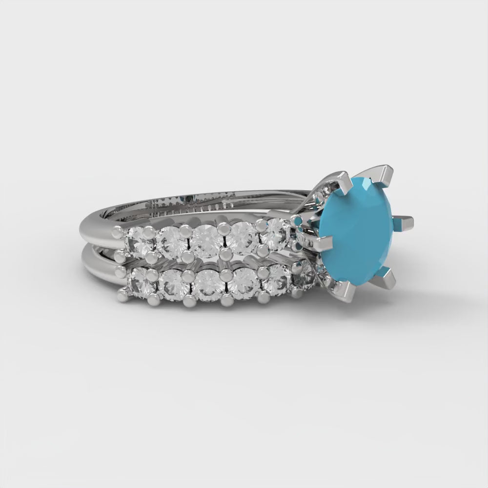 1.66 cttw Round Cut Simulated Turquoise Bridal Set - Solid White Gold Engagement Ring & Wedding Band