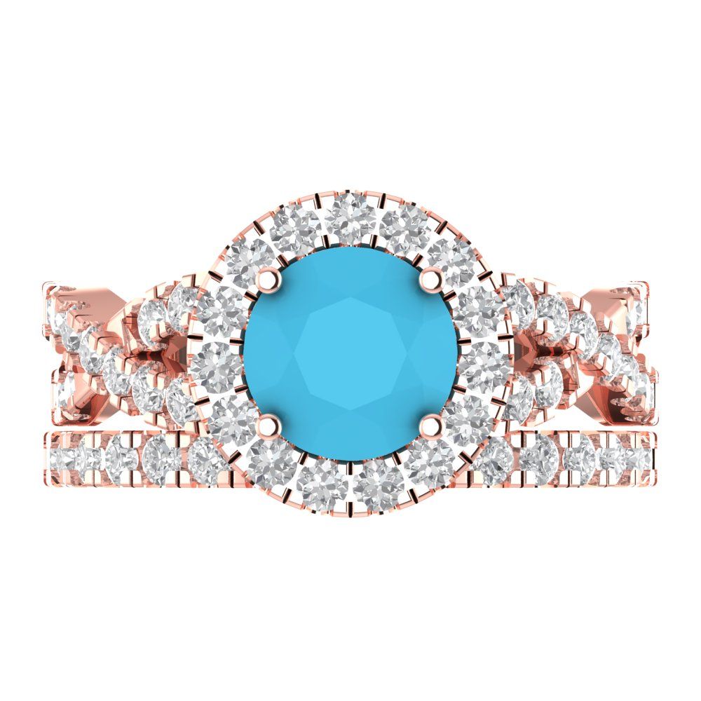 1.795 cttw Round Cut Simulated Turquoise Bridal Set - Solid Rose Gold Engagement Ring & Wedding Band