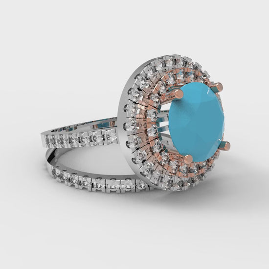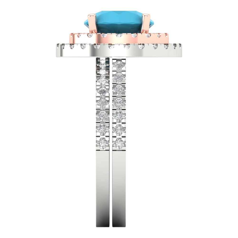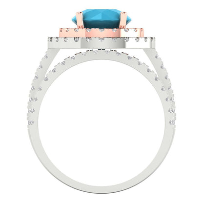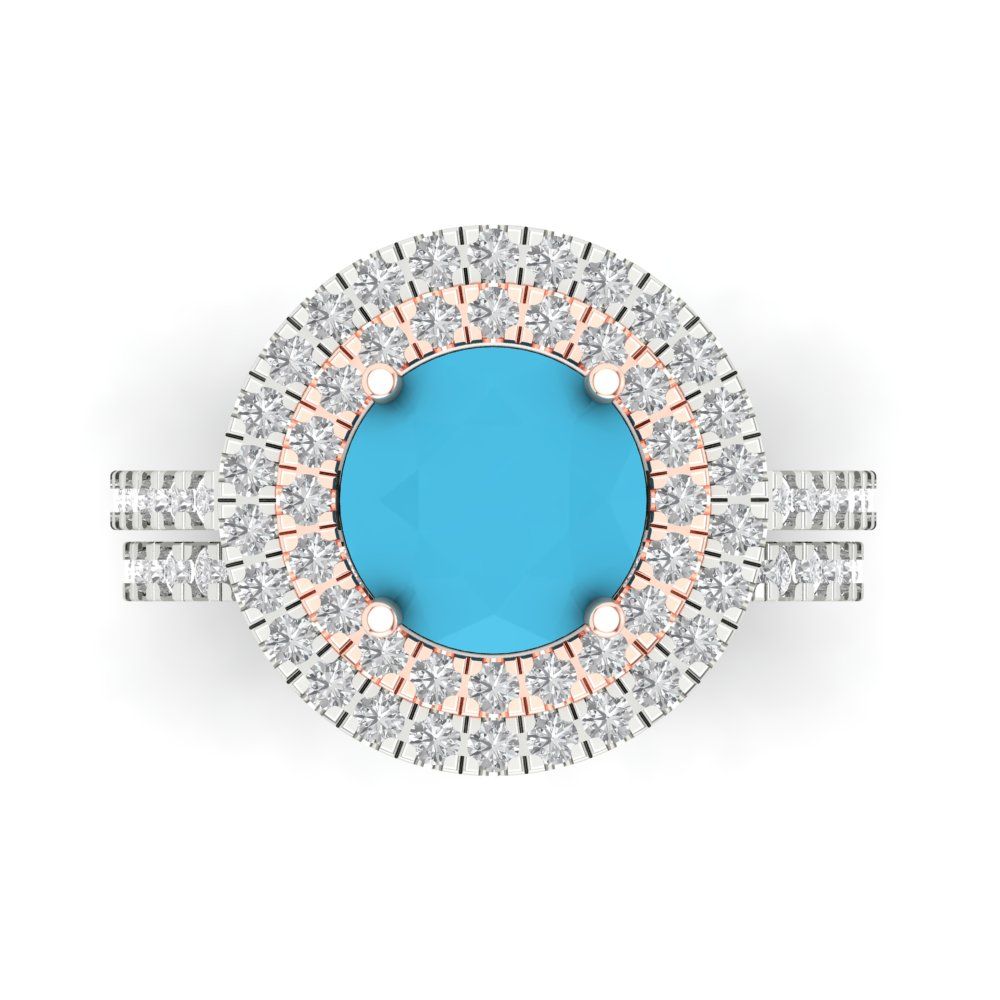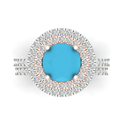 2.73 cttw Round Cut Simulated Turquoise Bridal Set - Solid White/Rose Gold Engagement Ring & Wedding Band