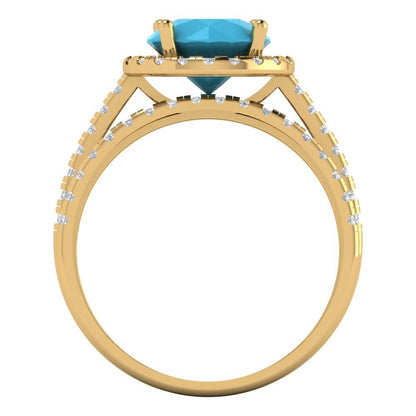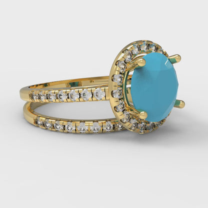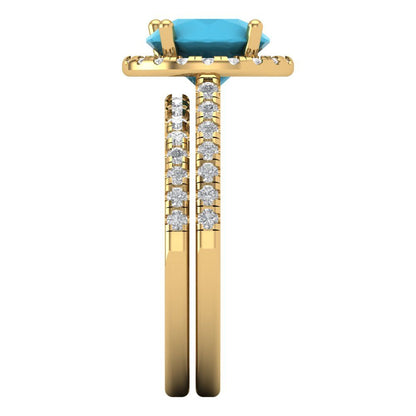 2.52 cttw Round Cut Simulated Turquoise Bridal Set - Solid Yellow Gold Engagement Ring & Wedding Band