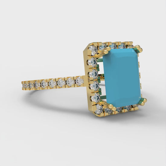 1.86 cttw Simulated Turquoise Solitaire with Zirconia Simulated Diamond Accents Engagement Ring - Solid Gold (Emerald Cut,7.5x5.5mm)