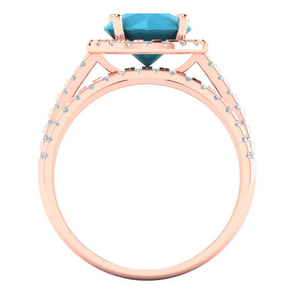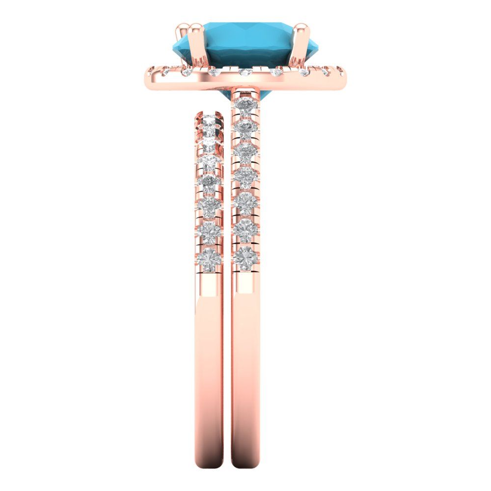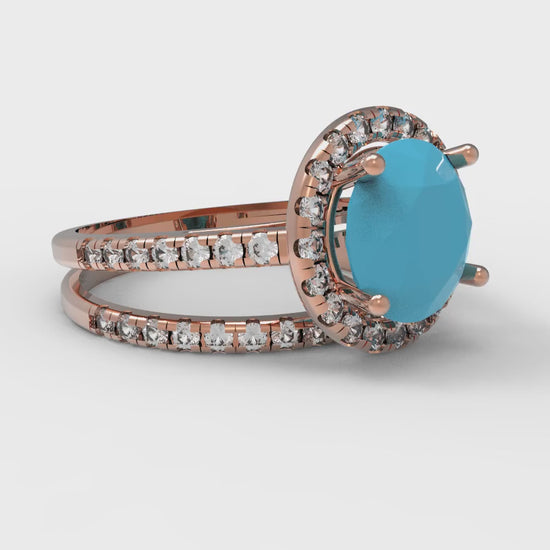 2.52 cttw Round Cut Simulated Turquoise Bridal Set - Solid Rose Gold Engagement Ring & Wedding Band