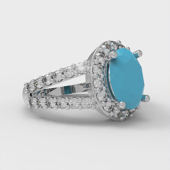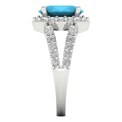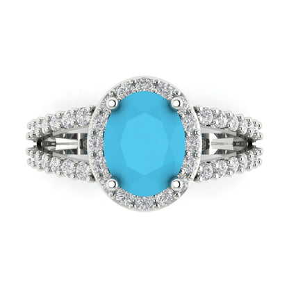 2.6 cttw Simulated Turquoise Solitaire with Zirconia Simulated Diamond Accents Engagement Ring - Solid Gold (Oval Cut,9x7mm)