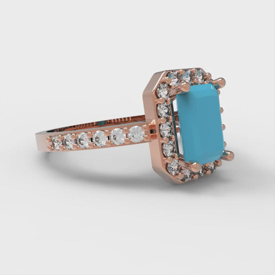 2.16 cttw Emerald Cut Simulated Turquoise Bridal Set - Solid Rose Gold Engagement Ring & Wedding Band