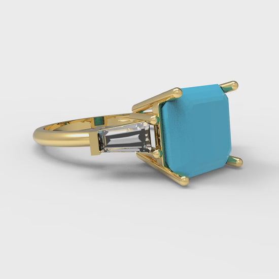 3 cttw Simulated Turquoise Three-Stone Engagement Ring - Solid Gold (Asscher Cut,8.0mm)