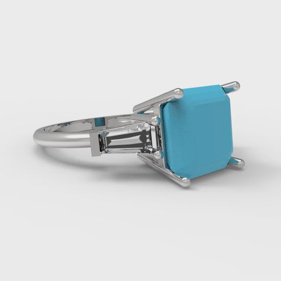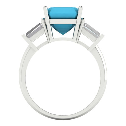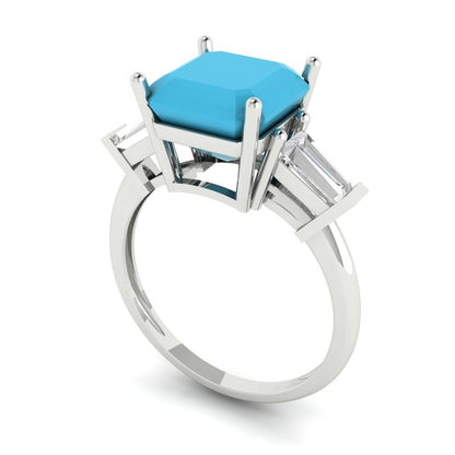 3 cttw Simulated Turquoise Three-Stone Engagement Ring - Solid Gold (Asscher Cut,8.0mm)