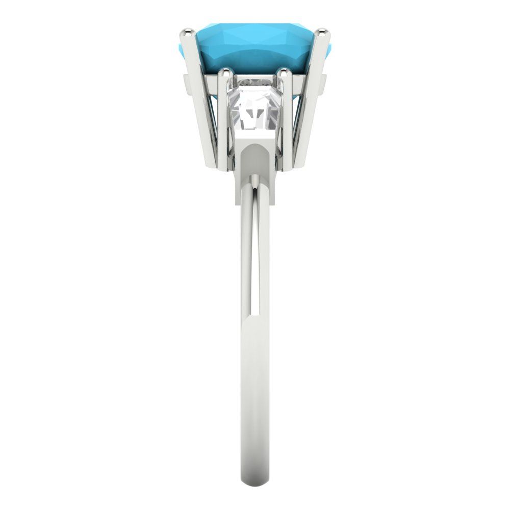 3 cttw Simulated Turquoise Three-Stone Engagement Ring - Solid Gold (Cushion Cut,8.0mm)