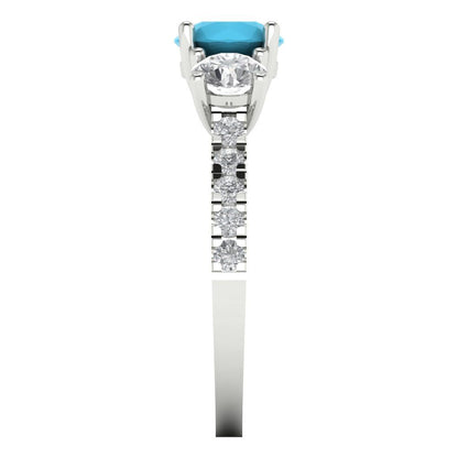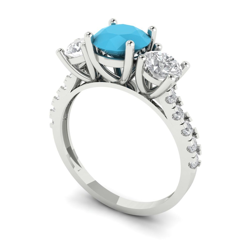 1.97 cttw Simulated Turquoise Three-Stone Engagement Ring - Solid Gold (Round Cut,6.5mm)