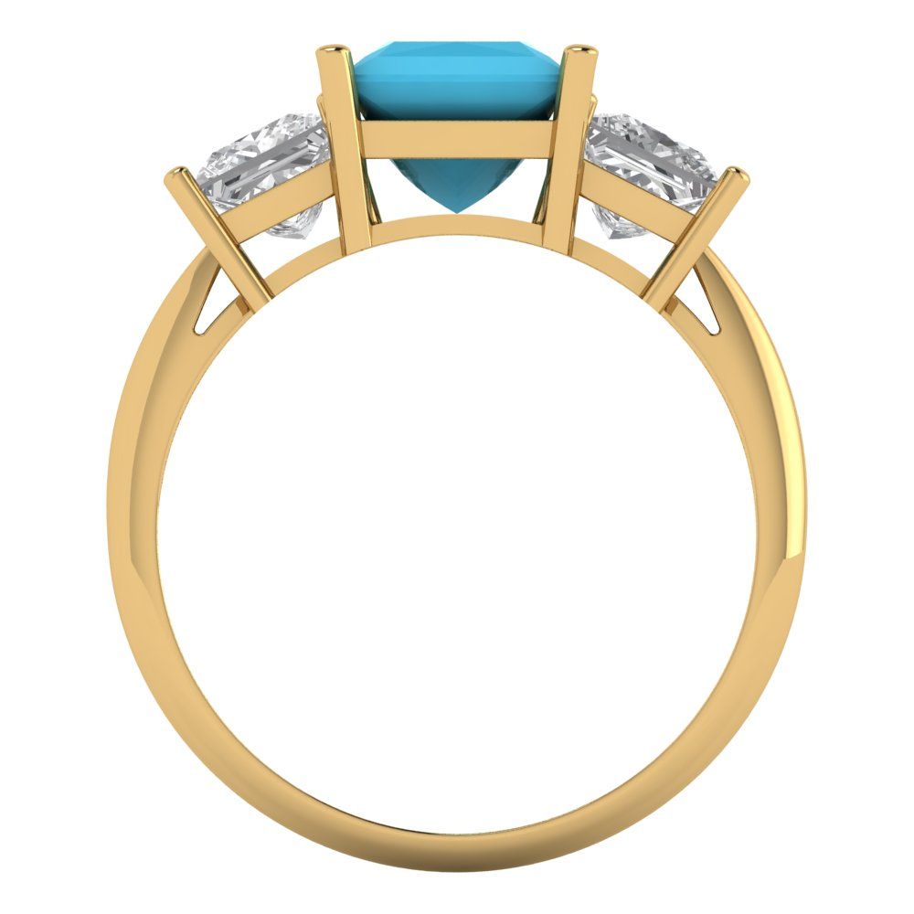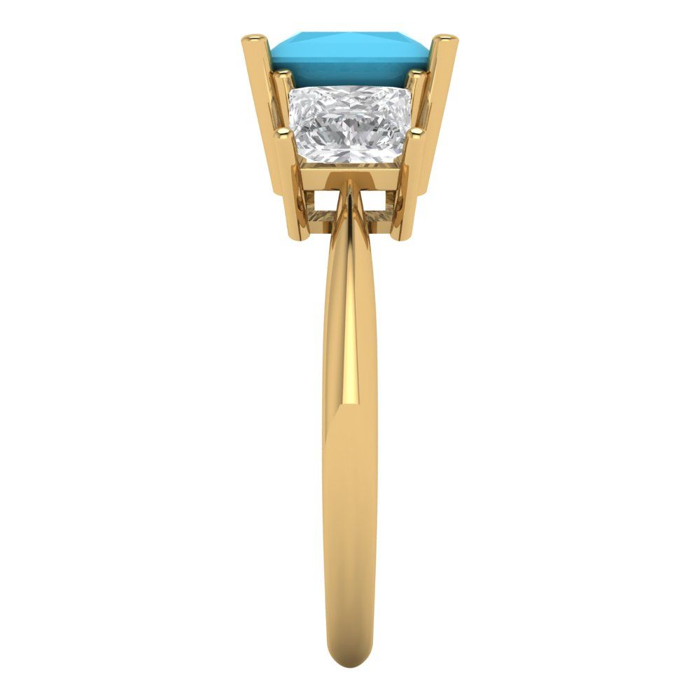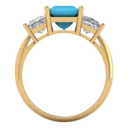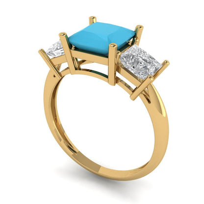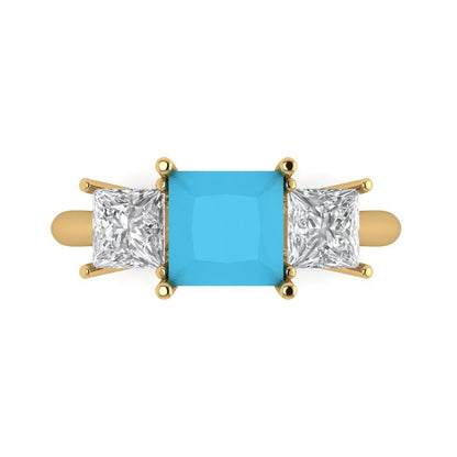 2.5 cttw Simulated Turquoise Three-Stone Engagement Ring - Solid Gold (Princess Cut,6.5 mm)