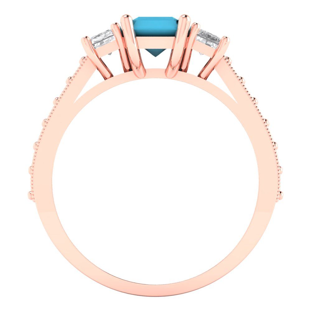 1.88 cttw Simulated Turquoise Three-Stone Engagement Ring - Solid Gold (Emerald Cut,7x5mm)