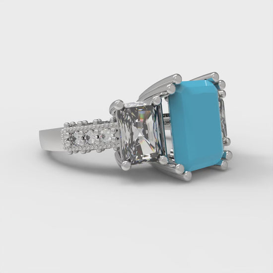 4.27 cttw Simulated Turquoise Three-Stone Engagement Ring - Solid Gold (Emerald Cut,9x7mm)