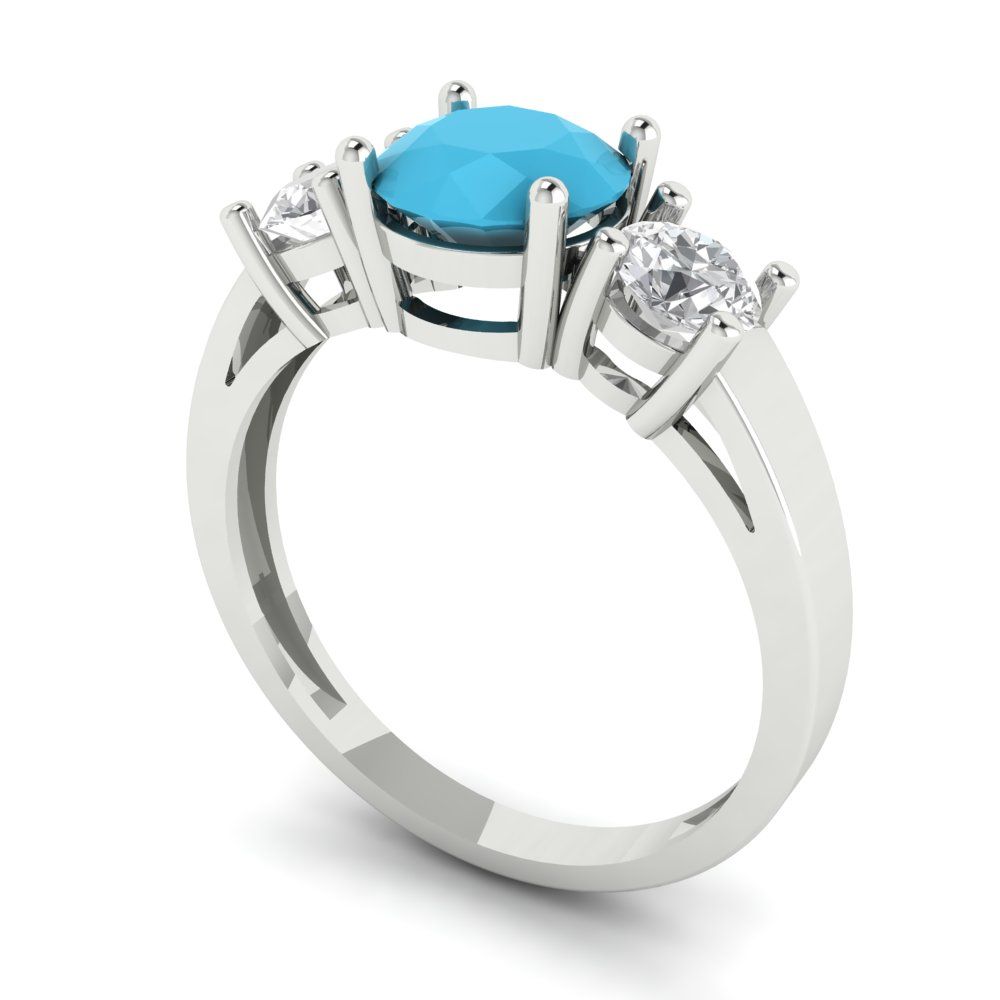 1.5 cttw Simulated Turquoise Three-Stone Engagement Ring - Solid Gold (Round Cut,6.5mm)