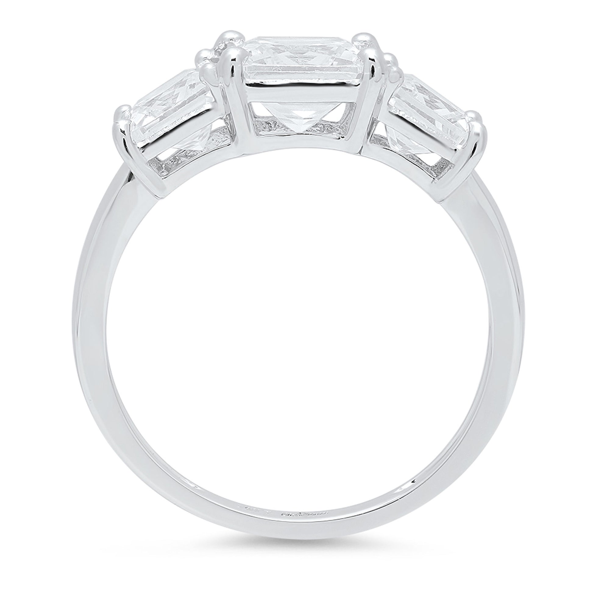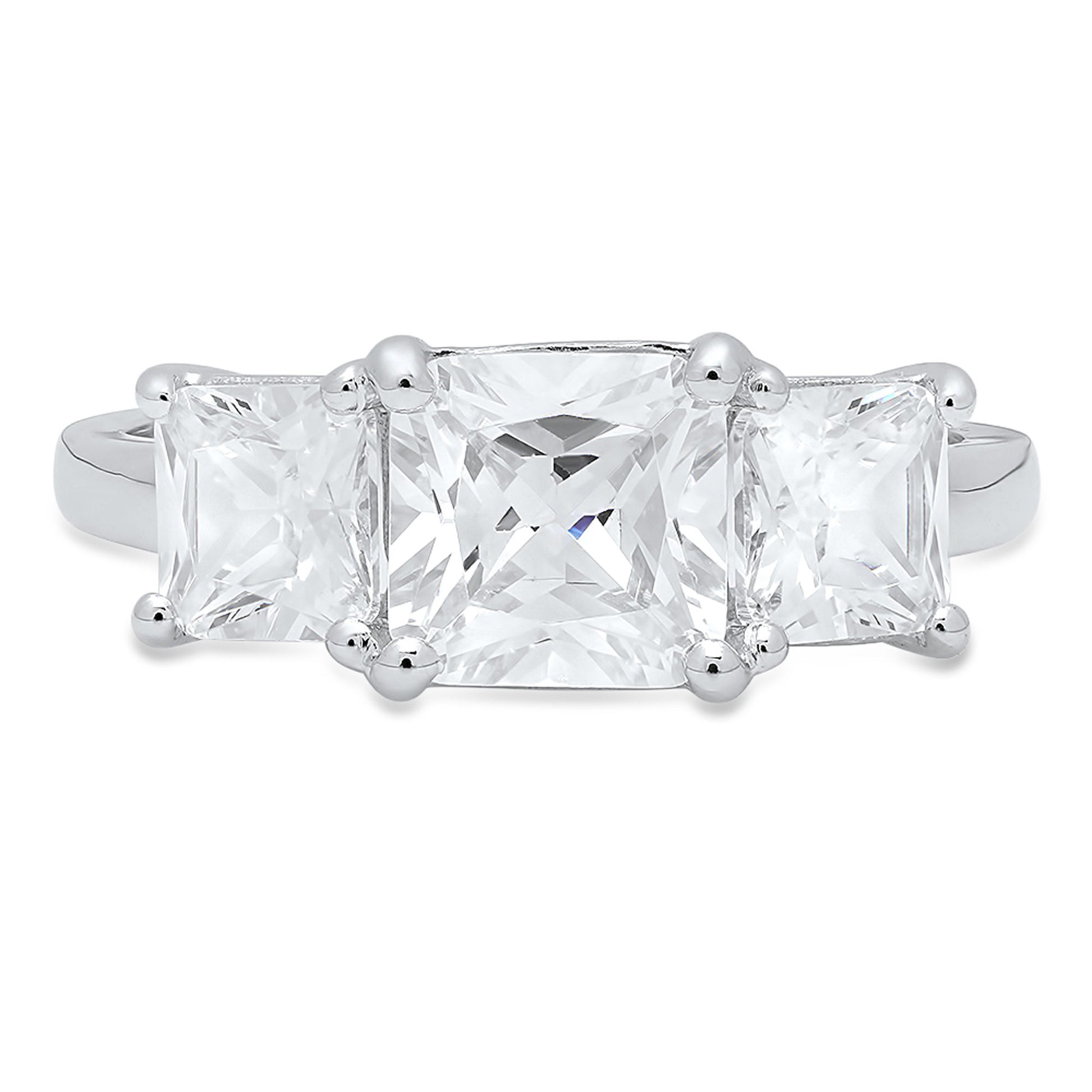 4.0 ct Brilliant Square Emerald Cut Natural Diamond Stone Clarity VS1-2 Color G-H White Gold Three-Stone Ring