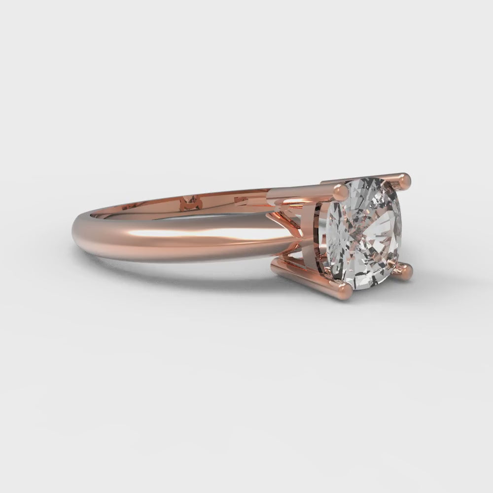 1 cttw White Sapphire Solitaire Engagement Ring - Solid Gold (Cushion Cut,6mm)