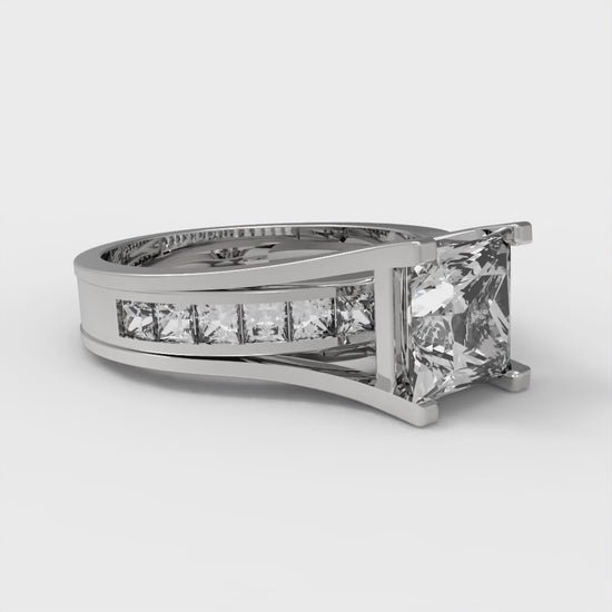 2.28 cttw Princess Cut White Sapphire Bridal Set - Solid White Gold Engagement Ring & Wedding Band